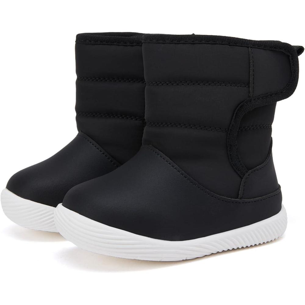 BMCiTYBM Baby Boy Girl Snow Boots Waterproof Winter Warm Booties Nonslip Lightweight Outdoor Shoes for First Walkers 6 9 12 18 24 Months(Infant/Toddler)(A2-black)