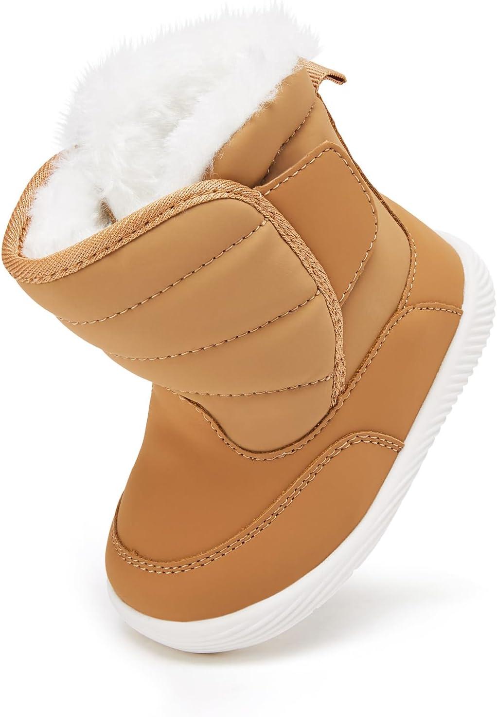 BMCiTYBM Baby Boy Girl Snow Boots Waterproof Winter Warm Booties Nonslip Lightweight Outdoor Shoes for First Walkers 6 9 12 18 24 Months(Infant/Toddler)(A4-camel)