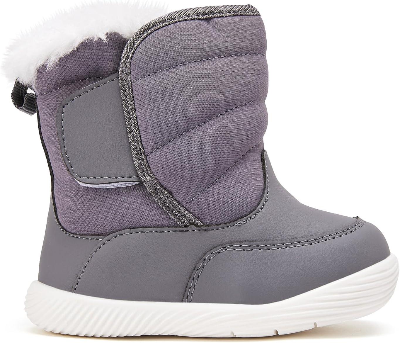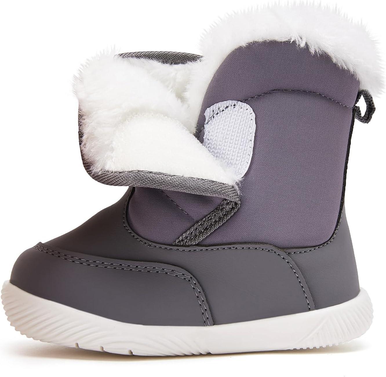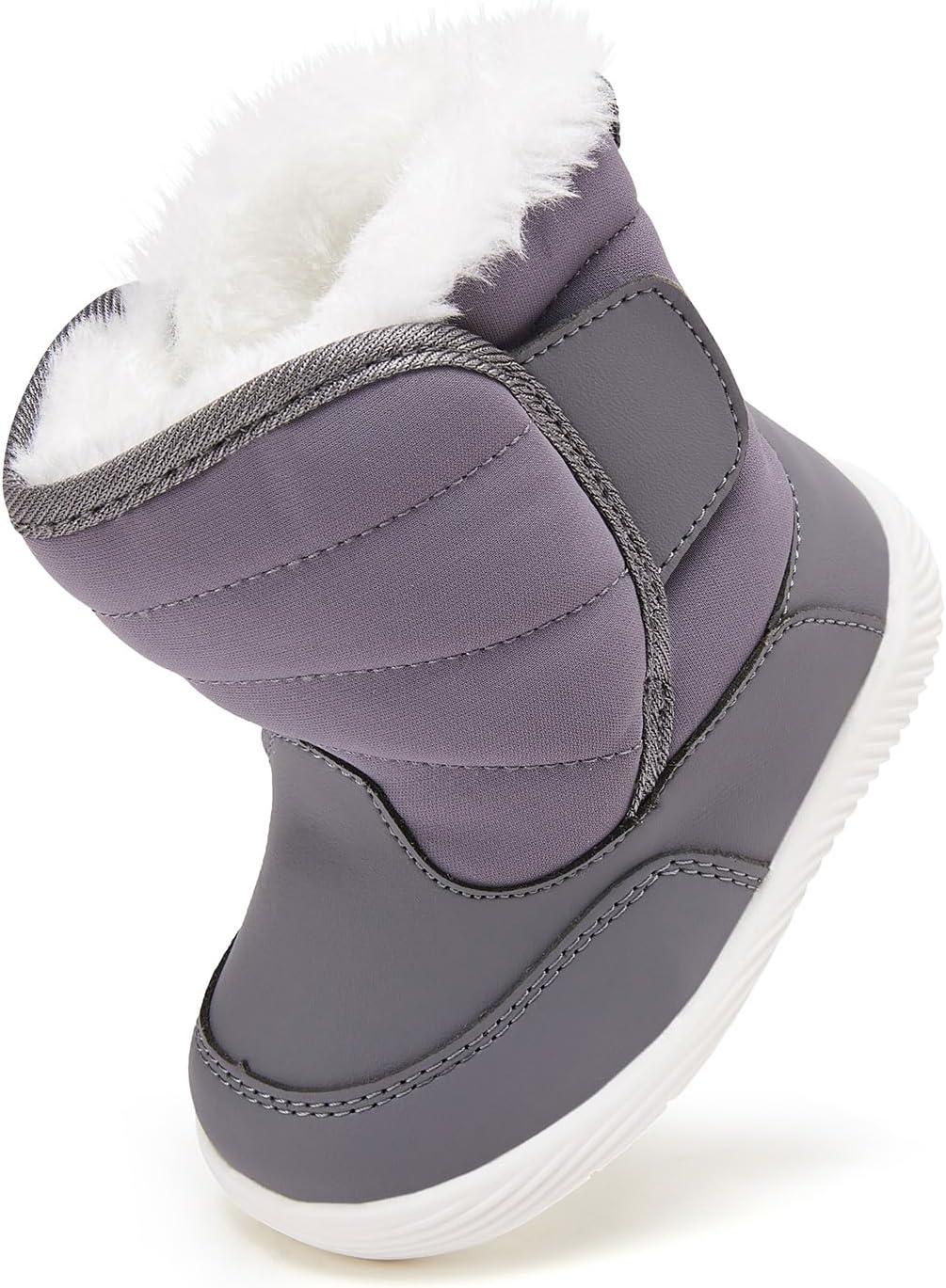 BMCiTYBM Baby Boy Girl Snow Boots Waterproof Winter Warm Booties Nonslip Lightweight Outdoor Shoes for First Walkers 6 9 12 18 24 Months(Infant/Toddler)(A4-grey)