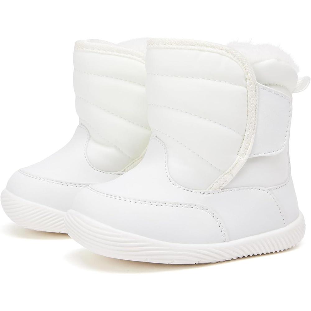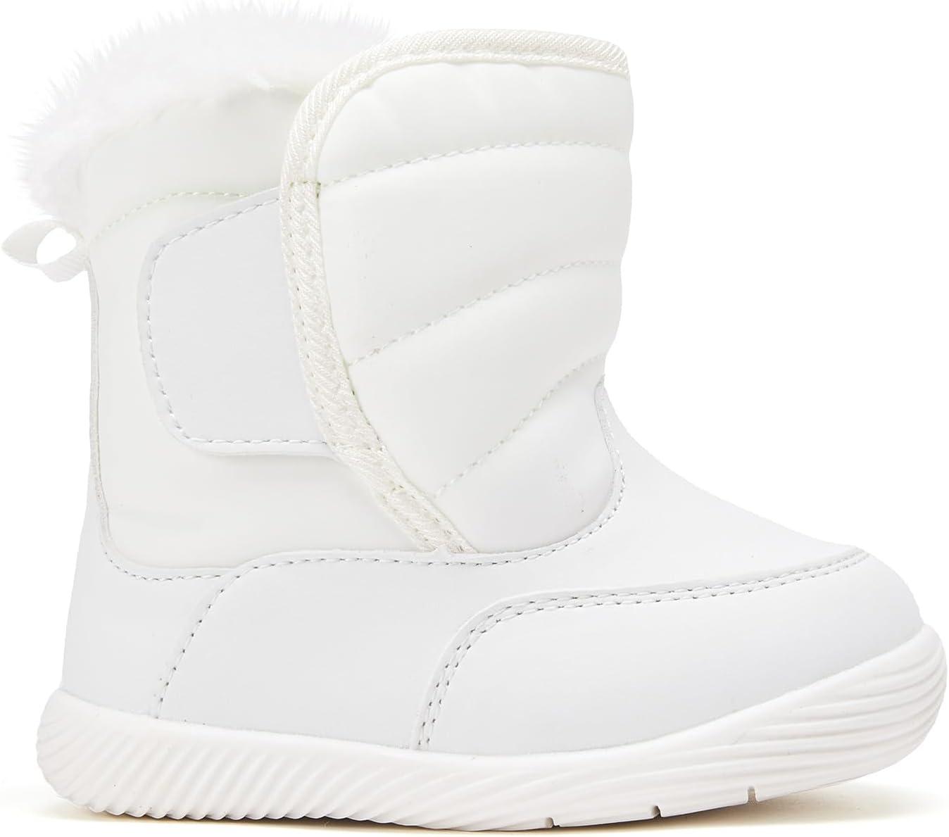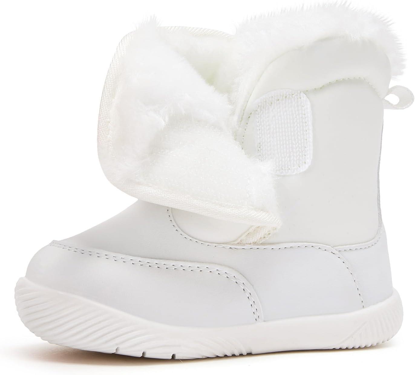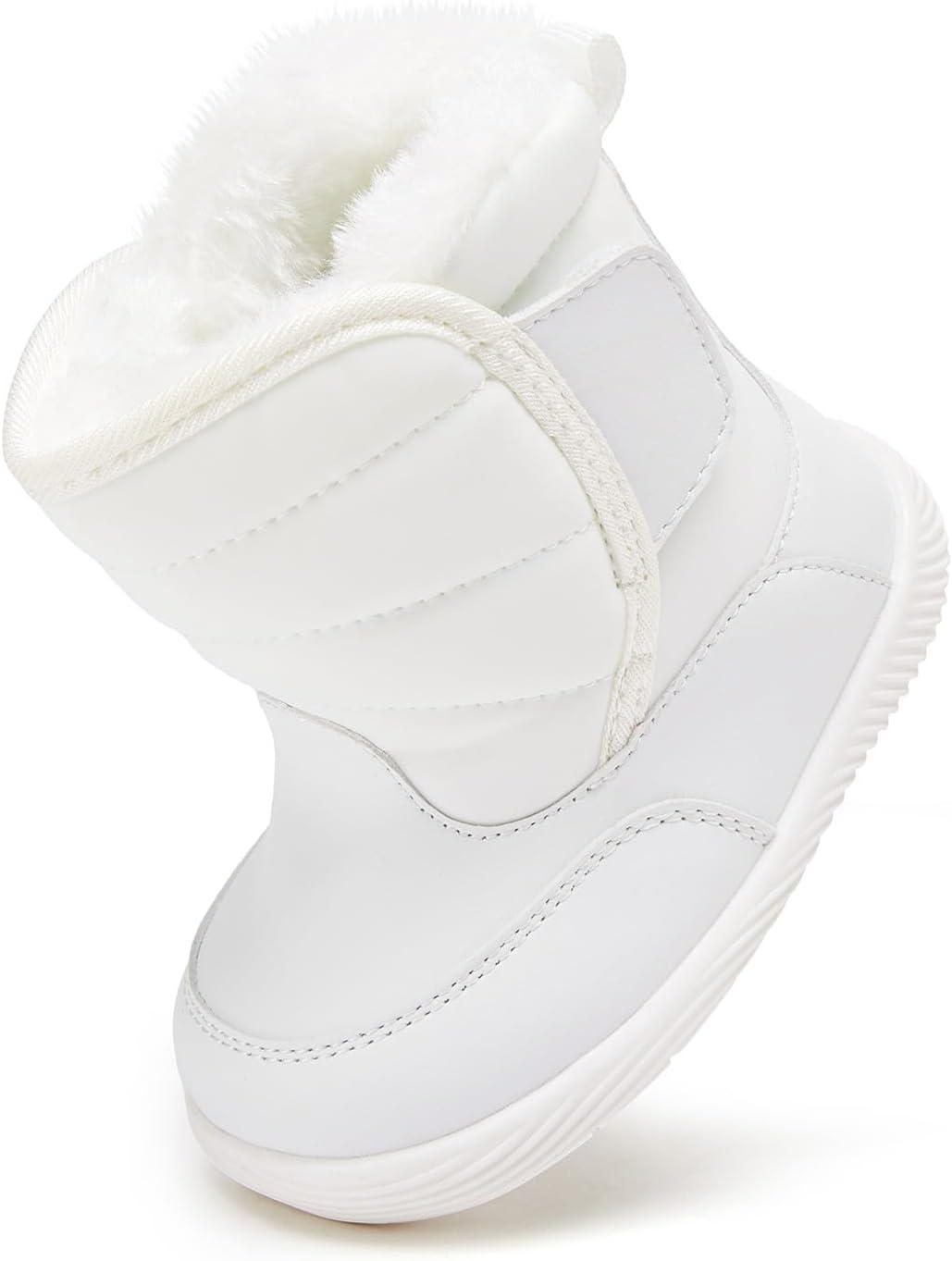 BMCiTYBM Baby Boy Girl Snow Boots Waterproof Winter Warm Booties Nonslip Lightweight Outdoor Shoes for First Walkers 6 9 12 18 24 Months(Infant/Toddler)(A4-white)