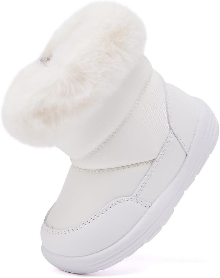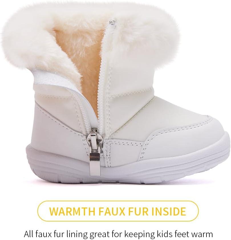 BMCiTYBM Baby Snow Boots Boys Girls Winter Infant Shoes Anti-Slip 6 9 12 18 24 Months Faux Fur(2-white)