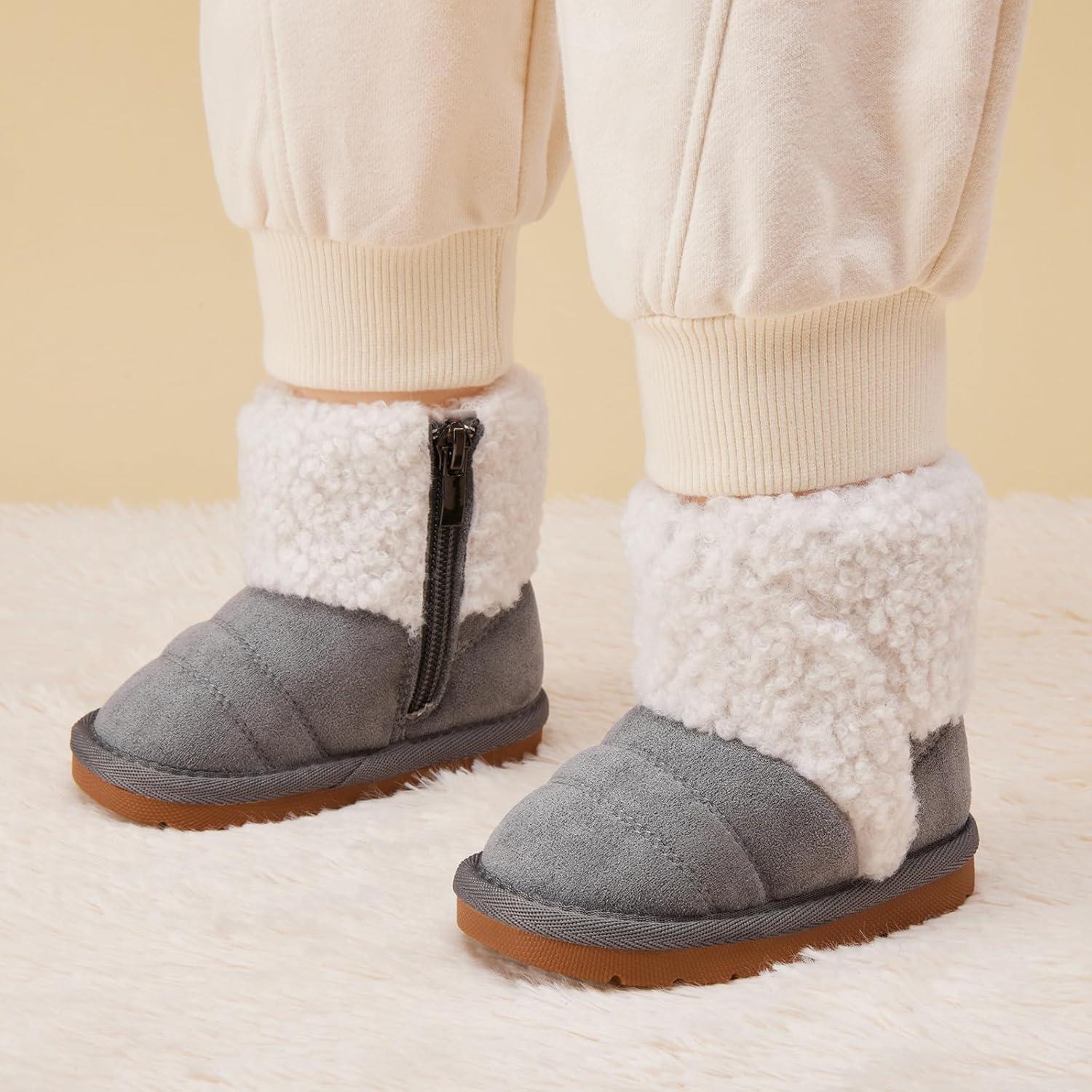 BMCiTYBM Baby Snow Boots Infant Boy Girl Winter Boots Nonslip Lightweight Outdoor Warm Shoes for Cold Weather 6 9 12 18 24 Months(Infant/Toddler)(D-grey)