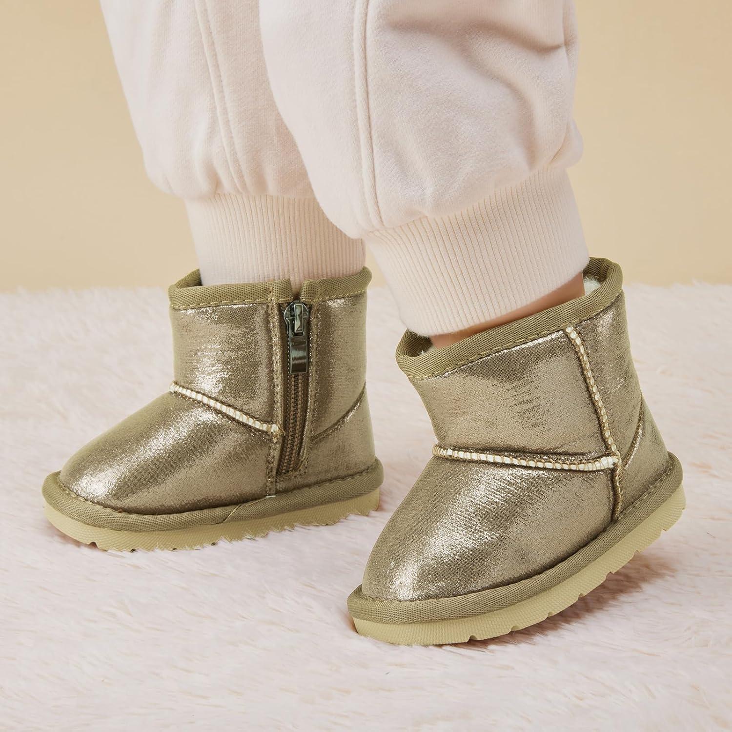 BMCiTYBM Baby Snow Boots Infant Boy Girl Winter Boots Nonslip Lightweight Outdoor Warm Shoes for Cold Weather 6 9 12 18 24 Months(Infant/Toddler)(E-gittler Gold)