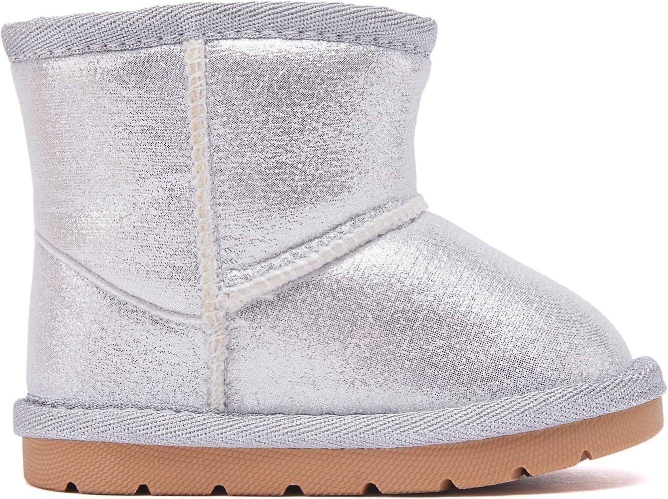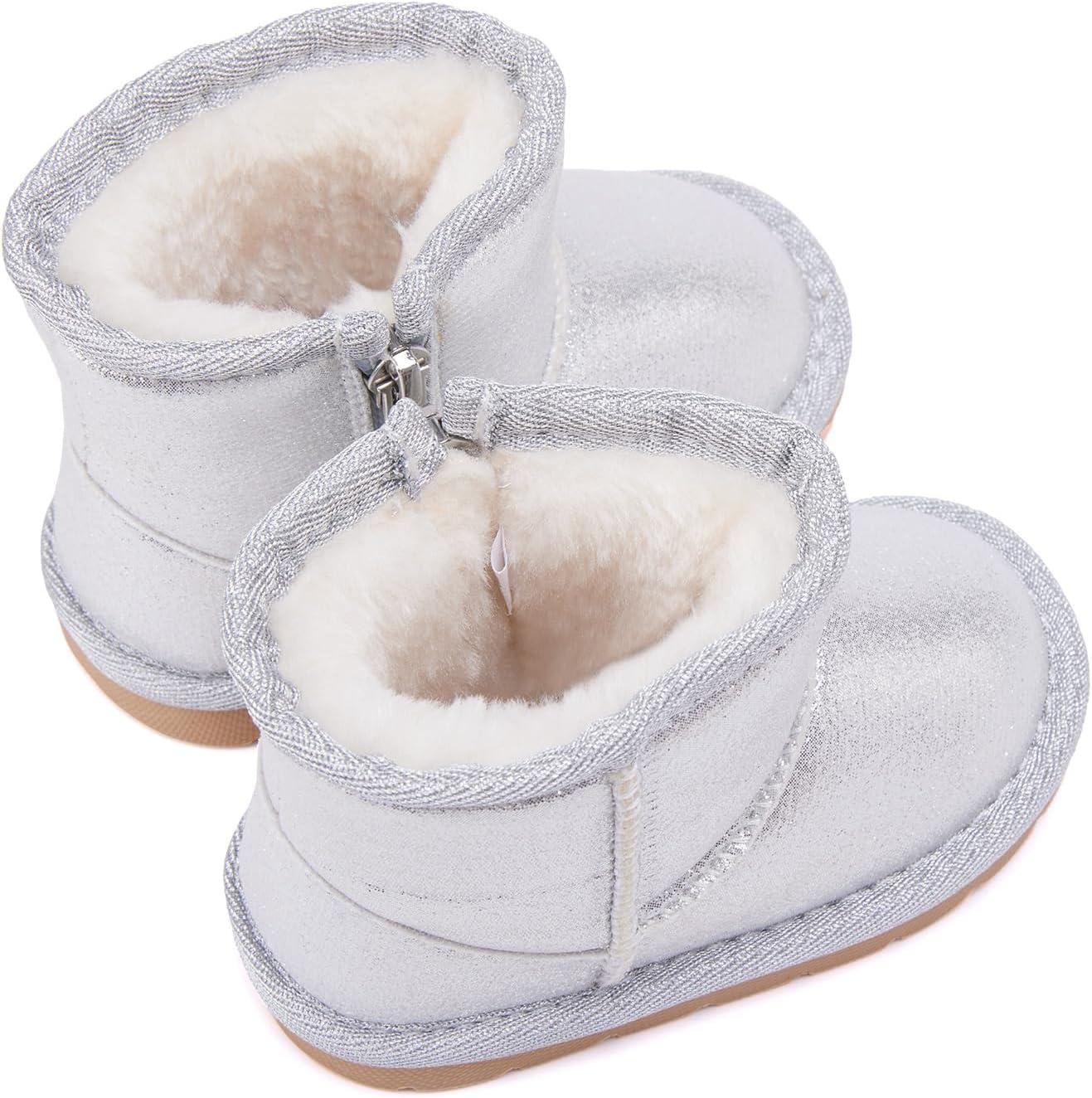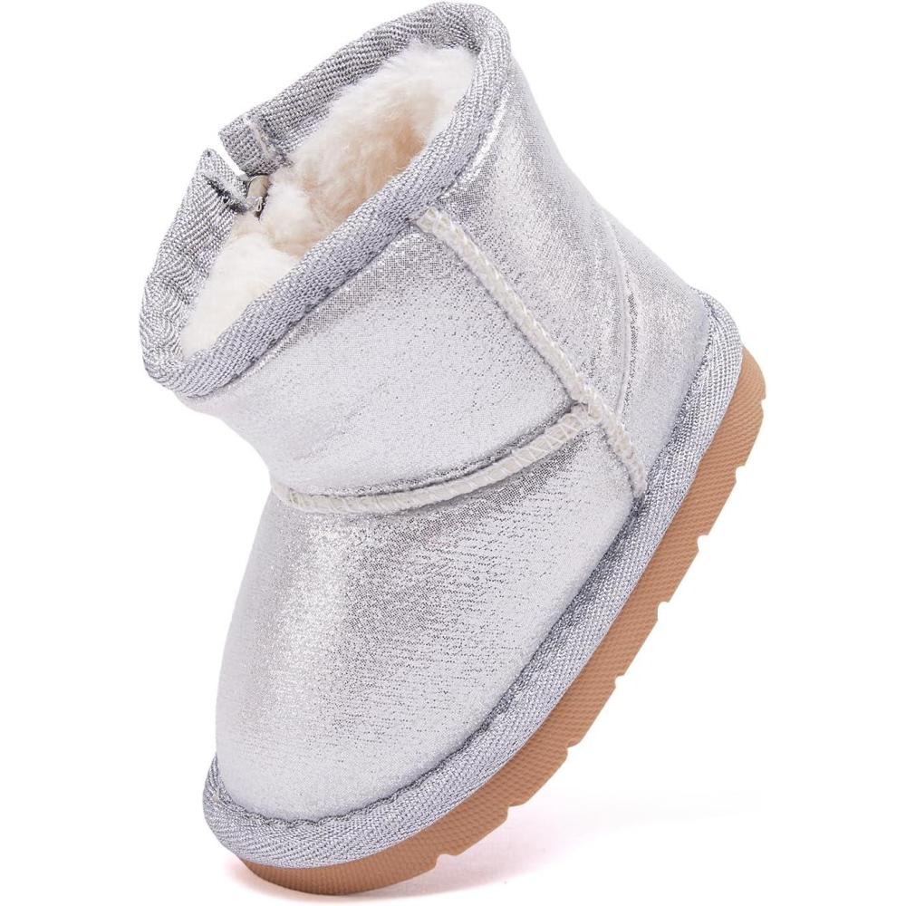 BMCiTYBM Baby Snow Boots Infant Boy Girl Winter Boots Nonslip Lightweight Outdoor Warm Shoes for Cold Weather 6 9 12 18 24 Months(Infant/Toddler)(E-gittler Silver)