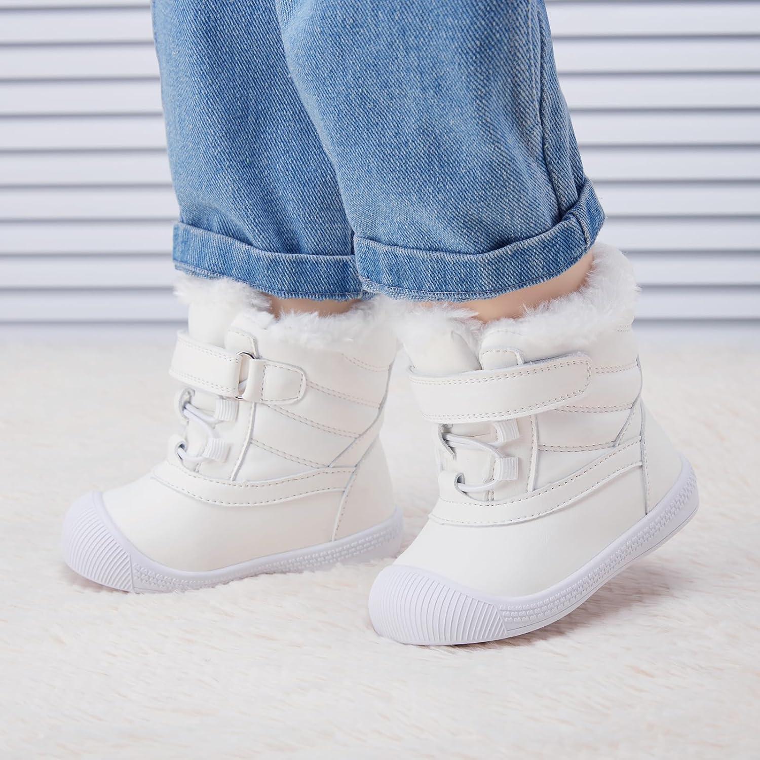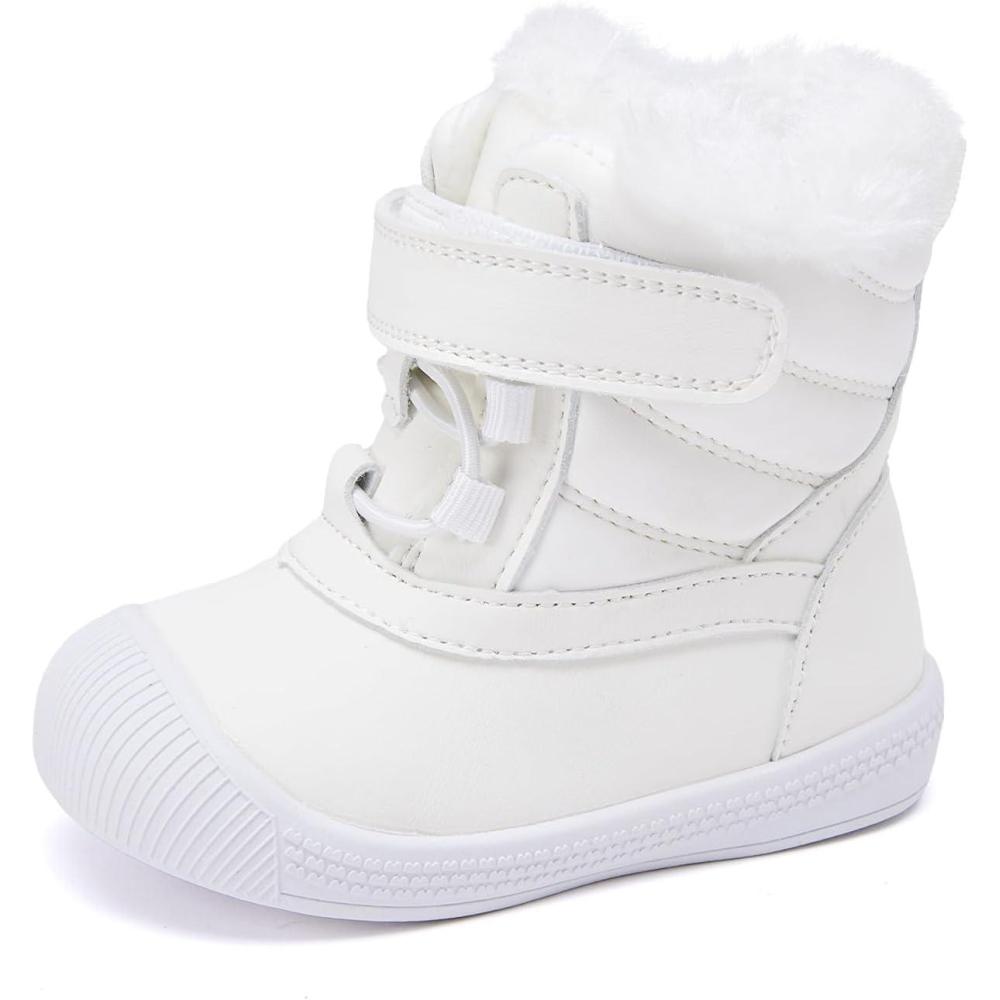 BMCiTYBM Baby Snow Boots Toddler Boy Girl Waterproof Winter Warm Booties Nonslip Lightweight Outdoor Shoes for First Walkers (Infant/Toddler)(A-white)