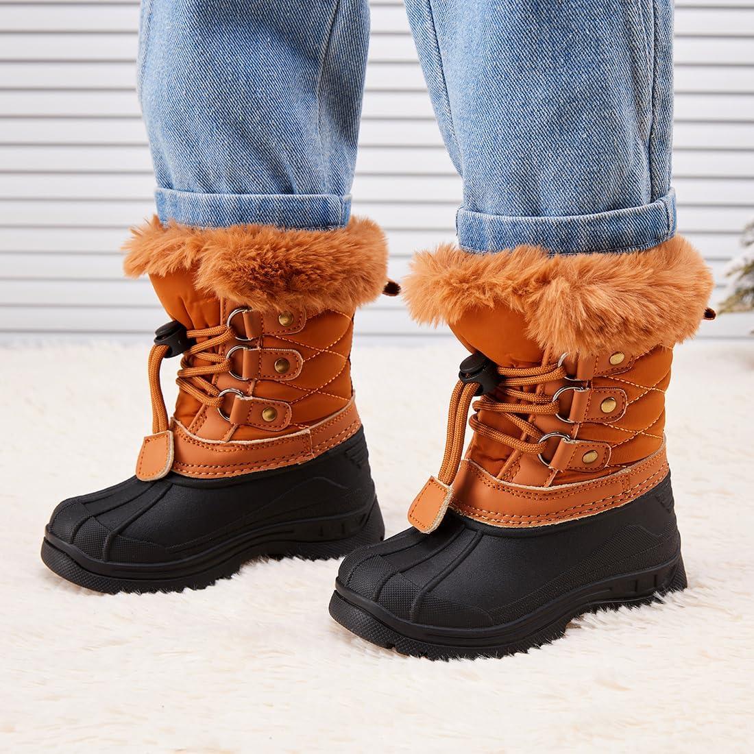 BMCiTYBM Kids Snow Boots Boys Girls Toddler Winter Waterproof Shoes Cold Weather Outdoor Lightweight (Toddler/Little Kids/Big Kids)(62-camel)