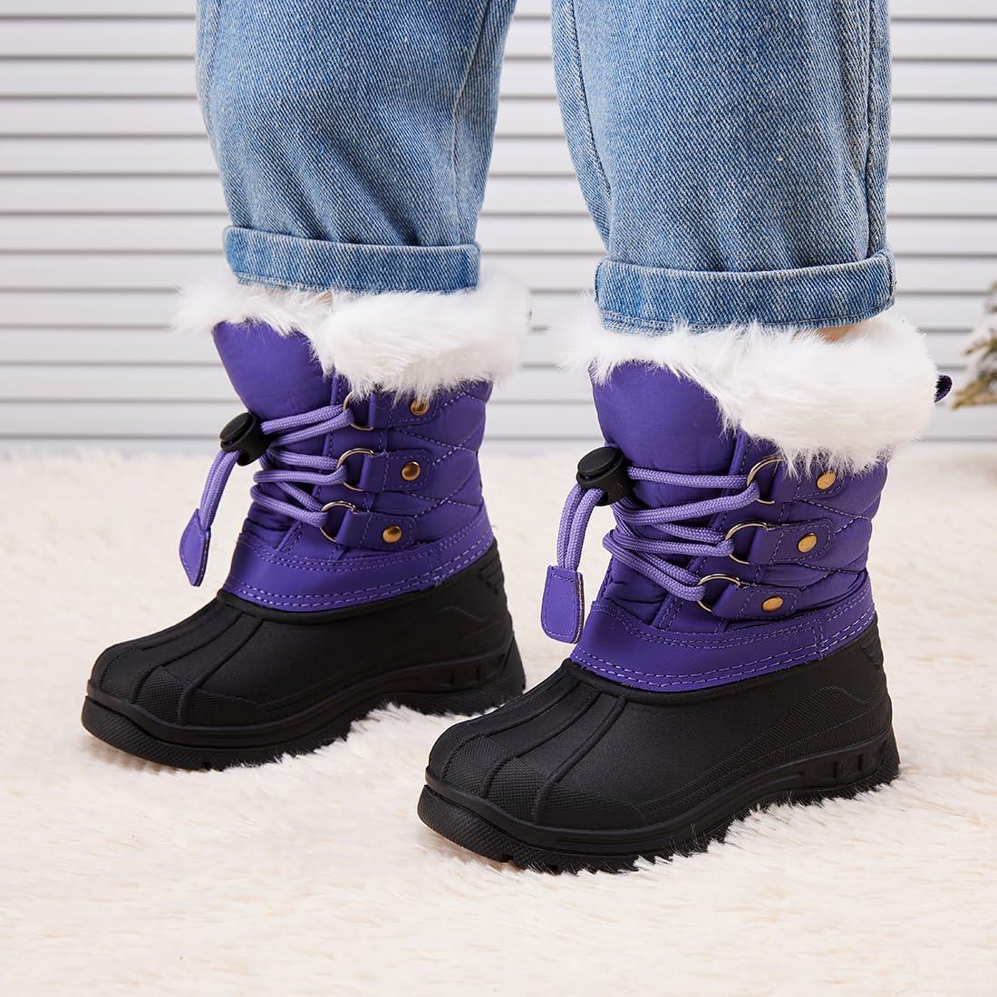 BMCiTYBM Kids Snow Boots Boys Girls Toddler Winter Waterproof Shoes Cold Weather Outdoor Lightweight (Toddler/Little Kids/Big Kids)(62-purple)