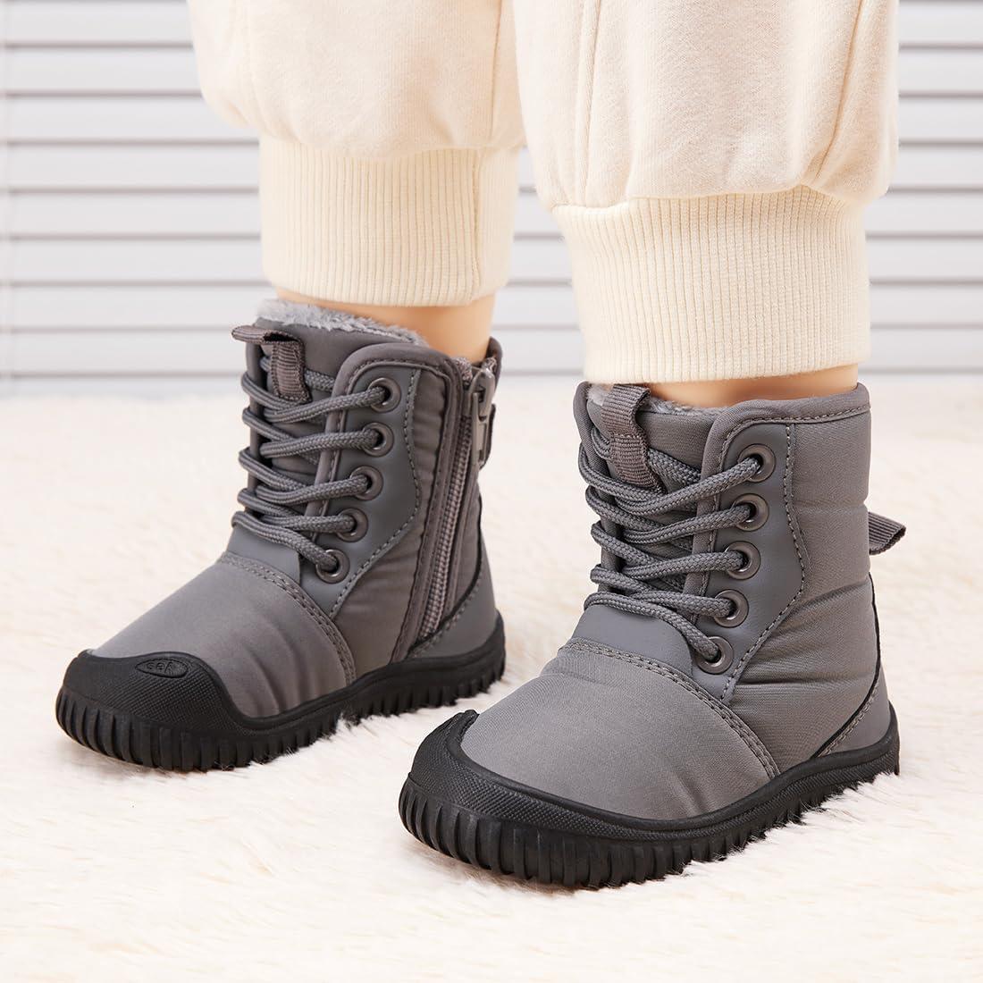 BMCiTYBM Toddler Baby Winter Snow Boots Boy Girl Faux Fur Warm Non Slip First Walking Infant Shoes(95-grey)