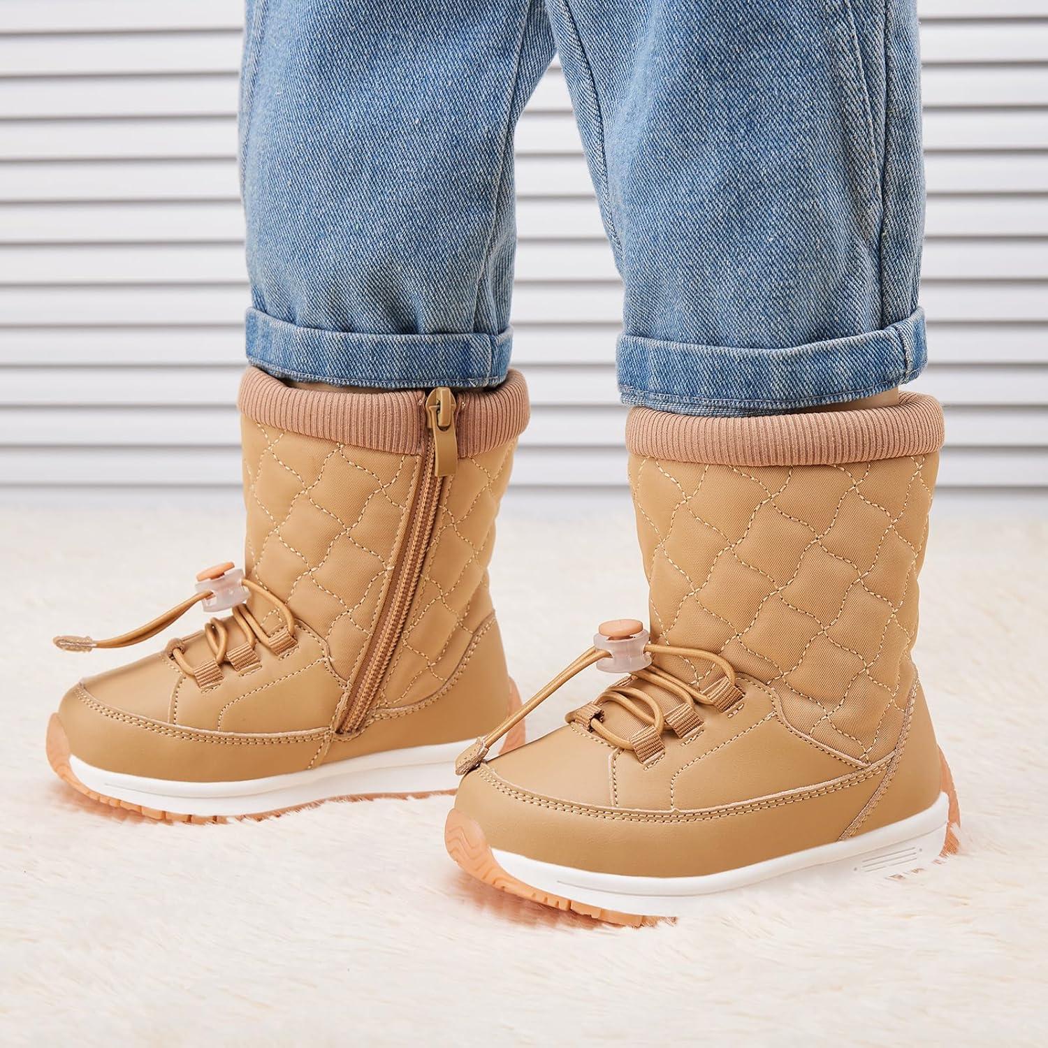 BMCiTYBM Toddler Boy Girl Snow Boots Waterproof Winter Warm Booties Nonslip Lightweight Outdoor Walking Shoes for Cold Weatehr(A-camel)