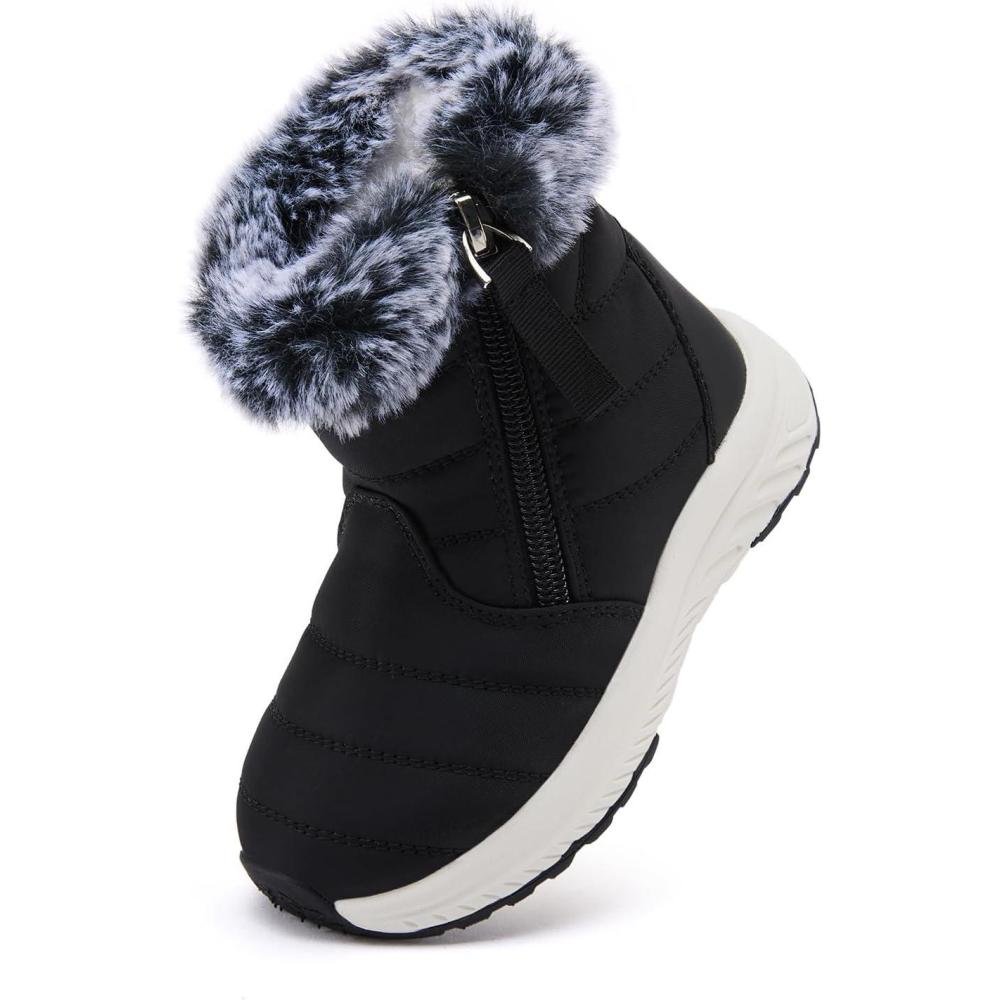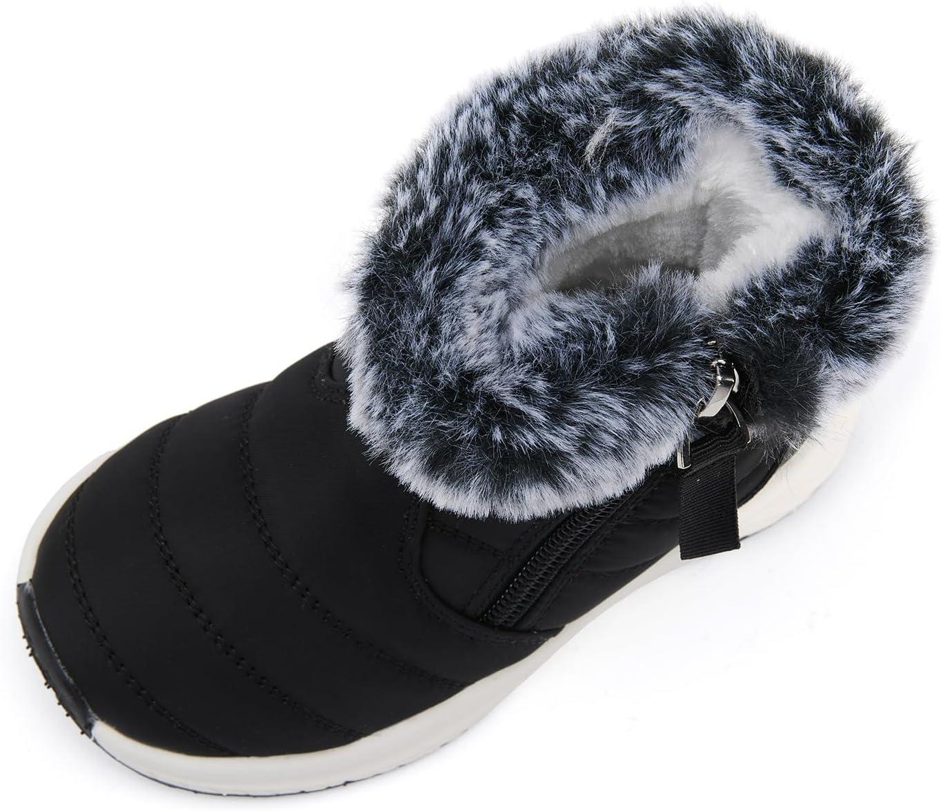 BMCiTYBM Toddler Boy Girl Snow Boots Waterproof Winter Warm Boots Nonslip Lightweight Outdoor Walking Shoes for Cold Weatehr(B-black)