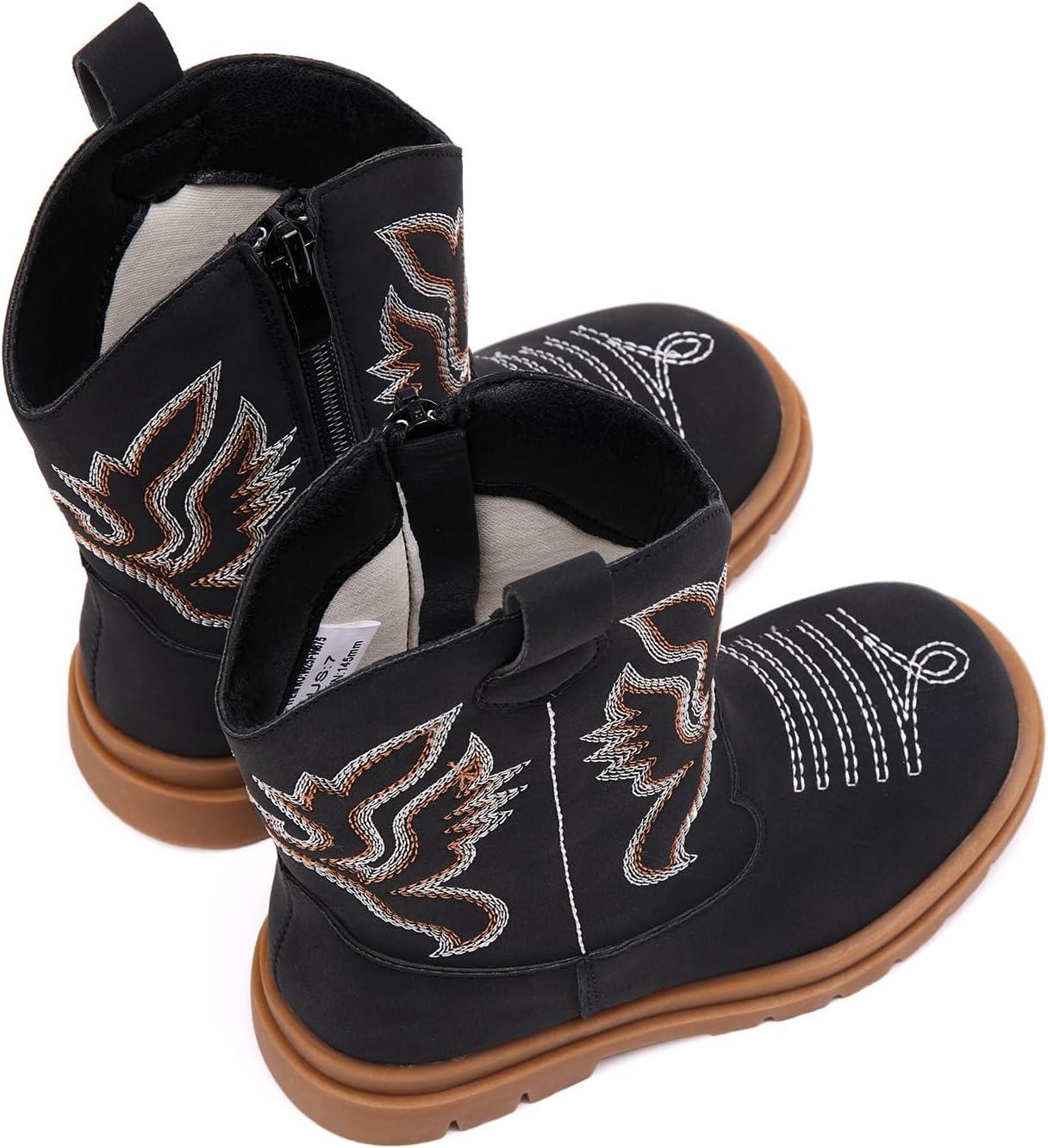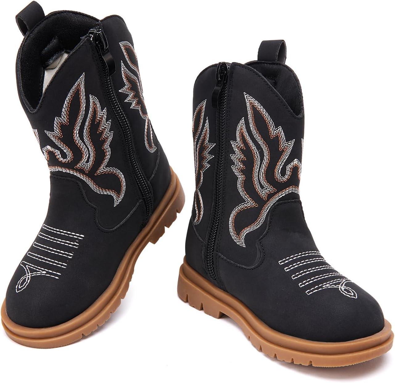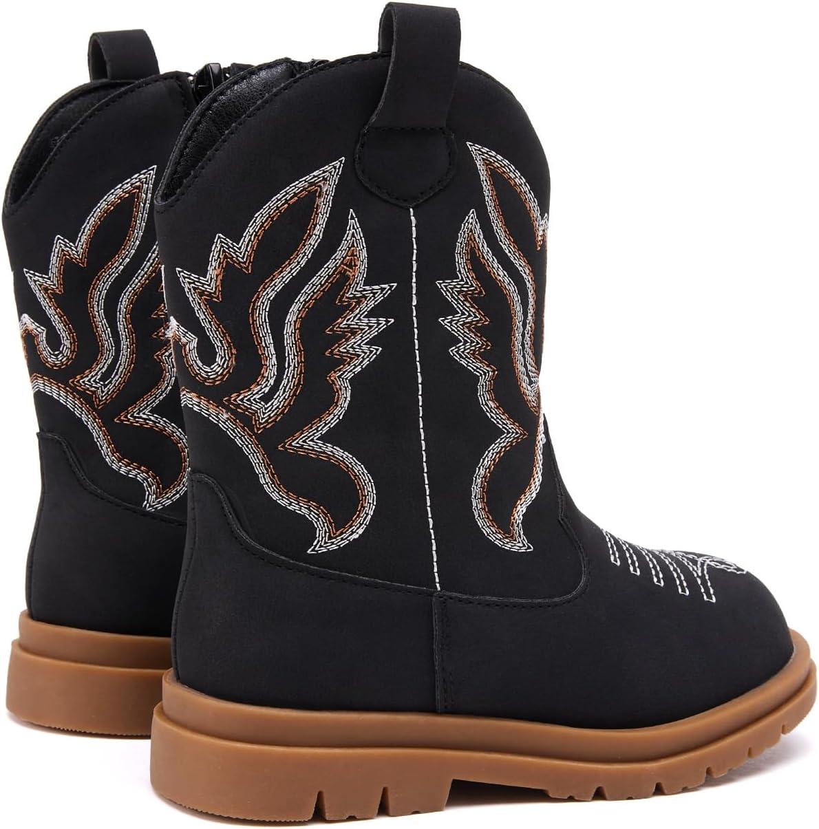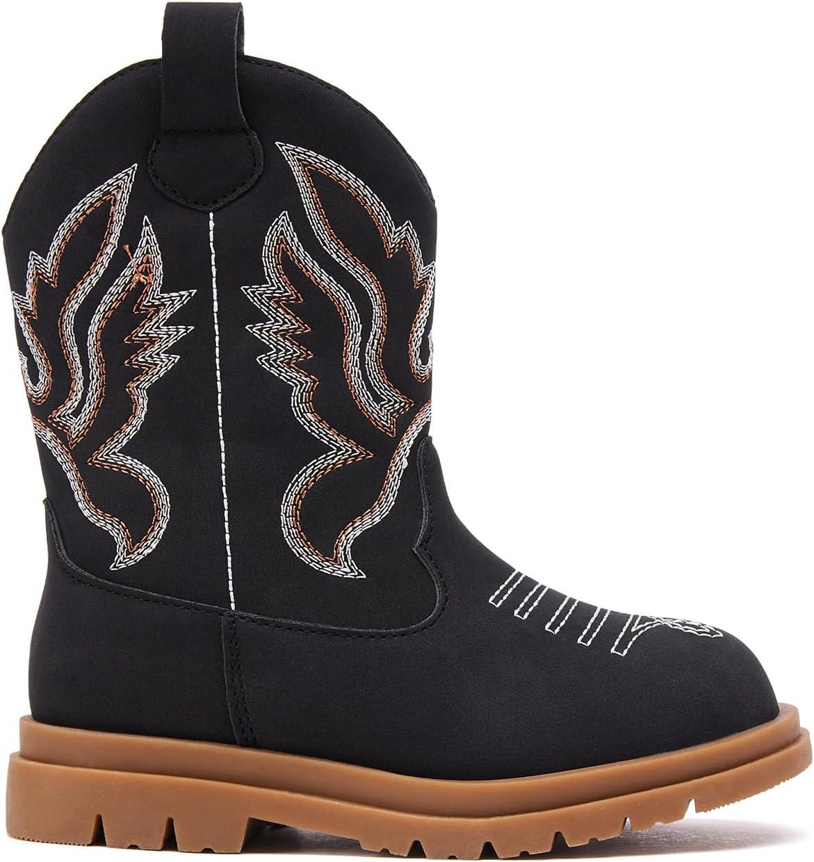 BMCiTYBM Toddler Cowboy Cowgirl Boots Boys Girls Western Round Toe Riding Mid Calf Booties for All Seasons(Toddler/Little Kid(A-black)