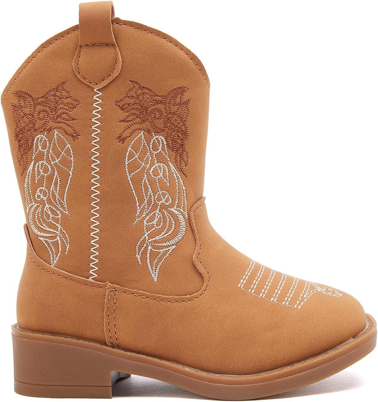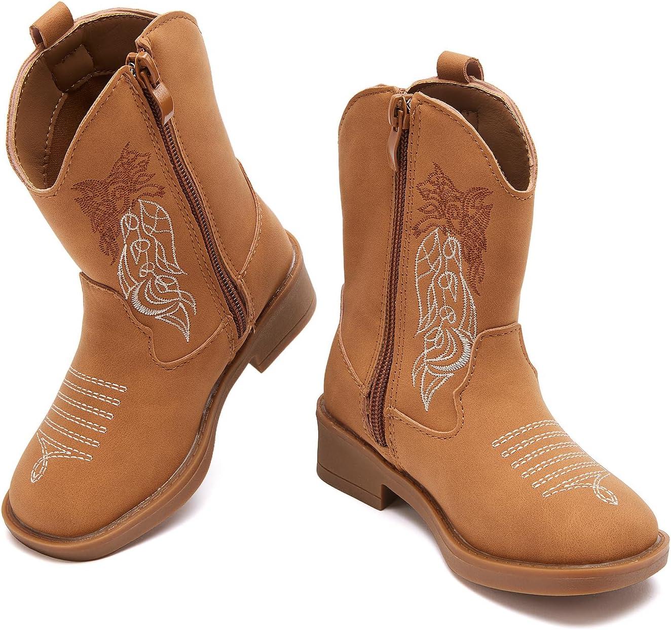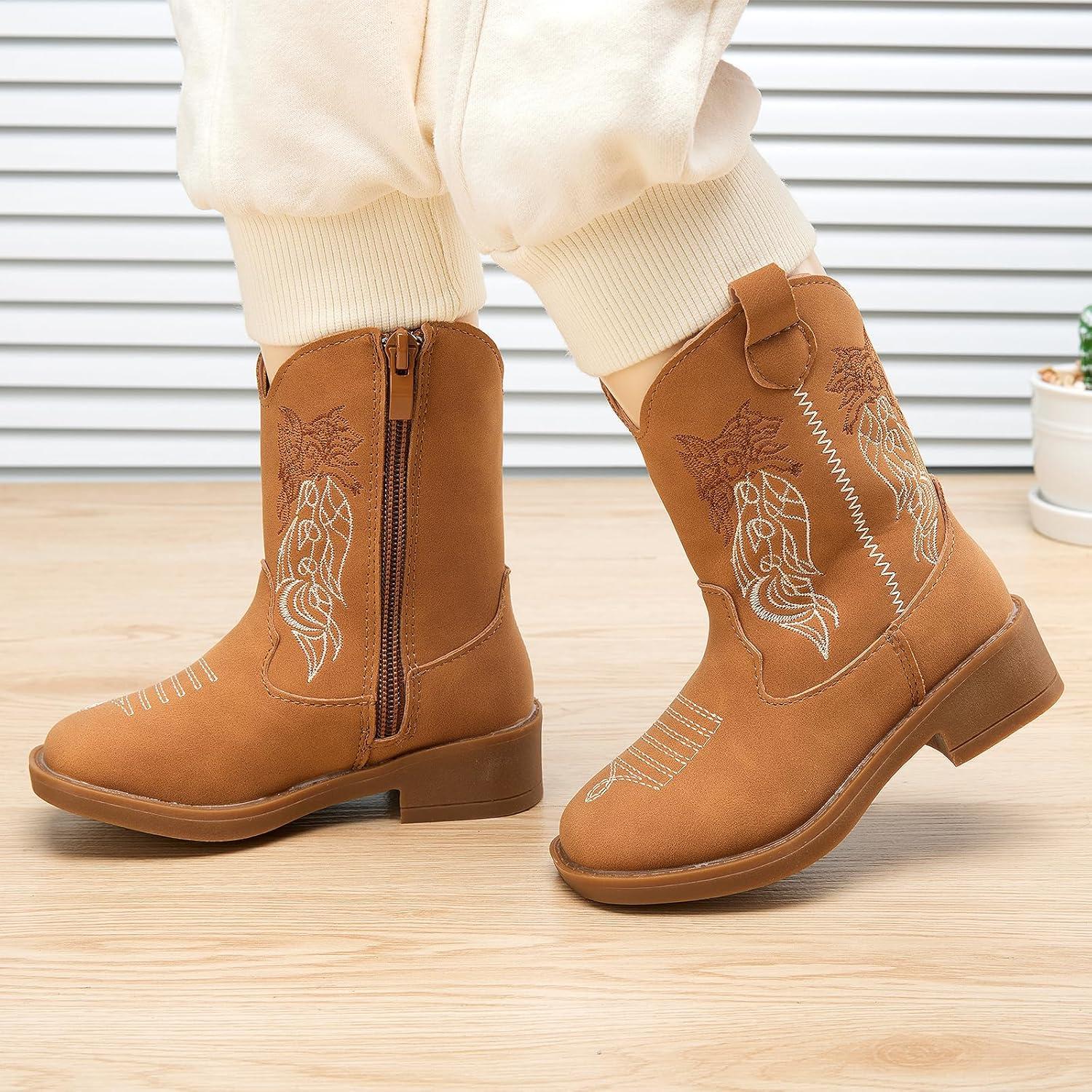 BMCiTYBM Toddler Cowgirl Cowboy Boots Boys Girls Square Toe Western Boots Mid Calf Side Zipper Riding Shoes for All Seasons(A-brown)