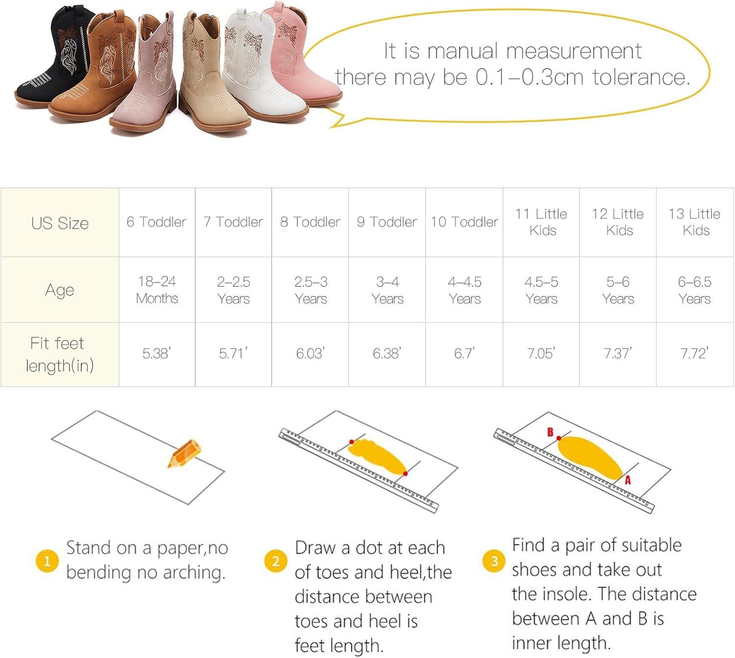 BMCiTYBM Toddler Cowgirl Cowboy Boots Boys Girls Square Toe Western Boots Mid Calf Side Zipper Riding Shoes for All Seasons(B-black)