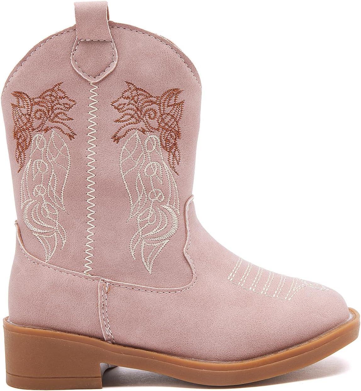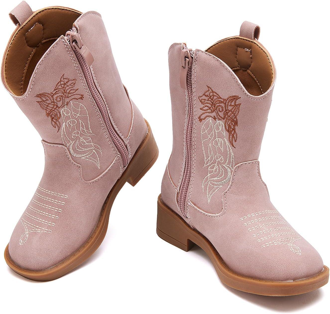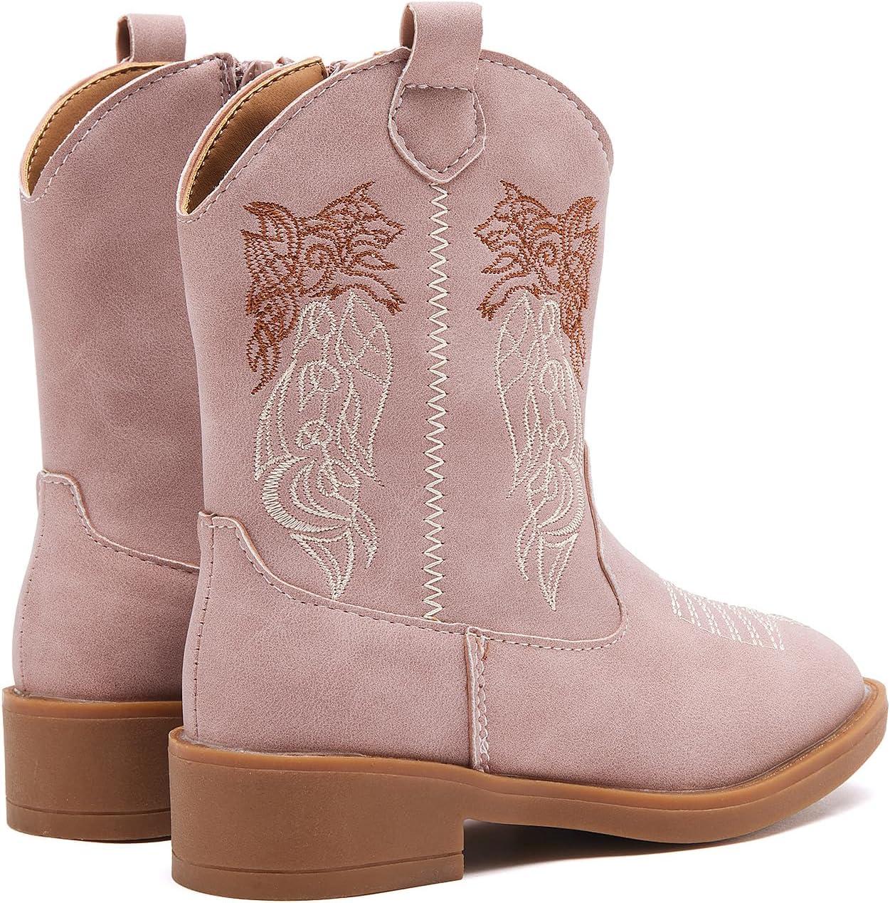 BMCiTYBM Toddler Cowgirl Cowboy Boots Boys Girls Square Toe Western Boots Mid Calf Side Zipper Riding Shoes for All Seasons(A-pink)