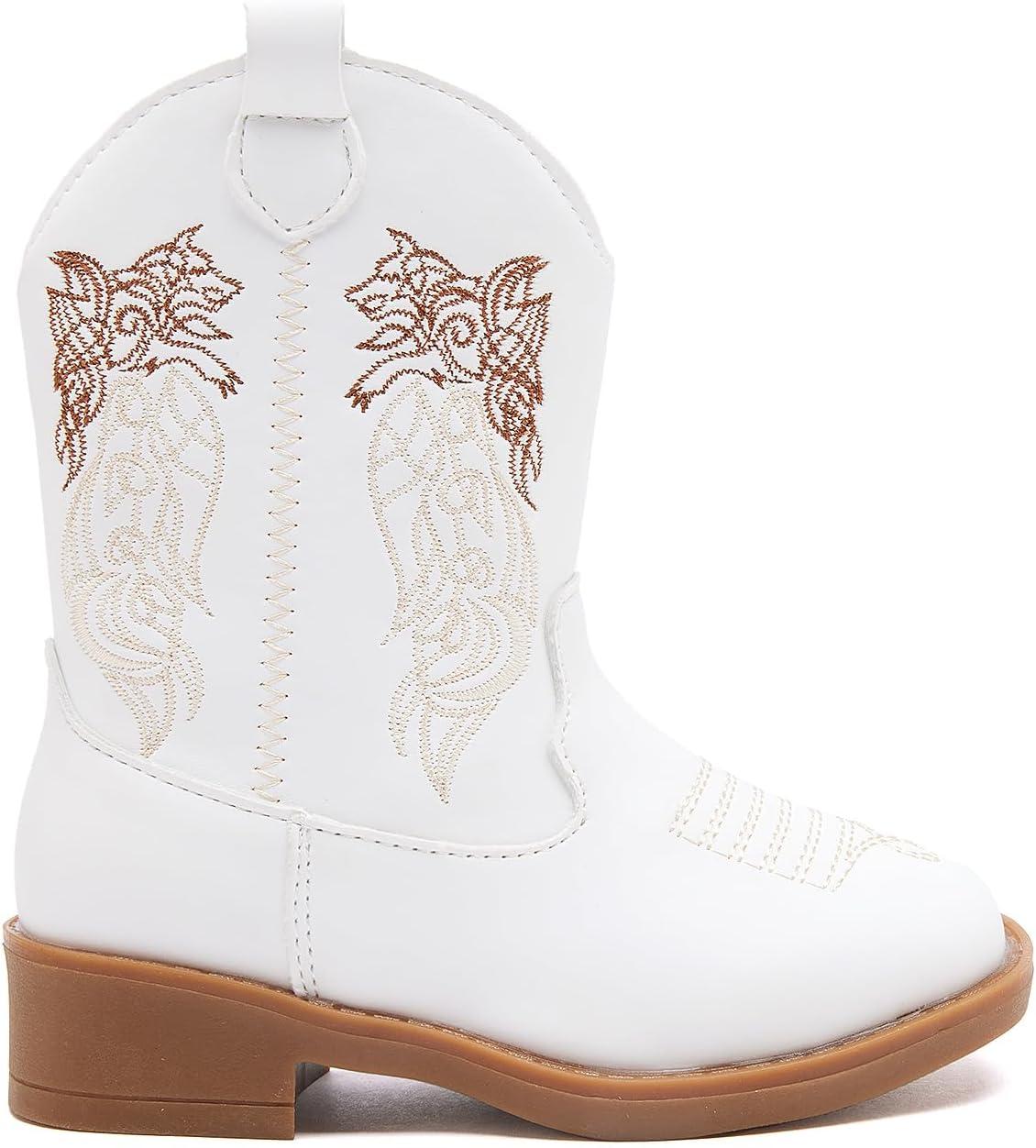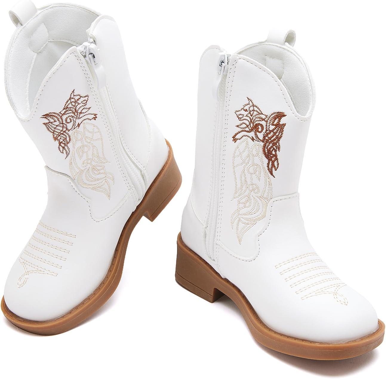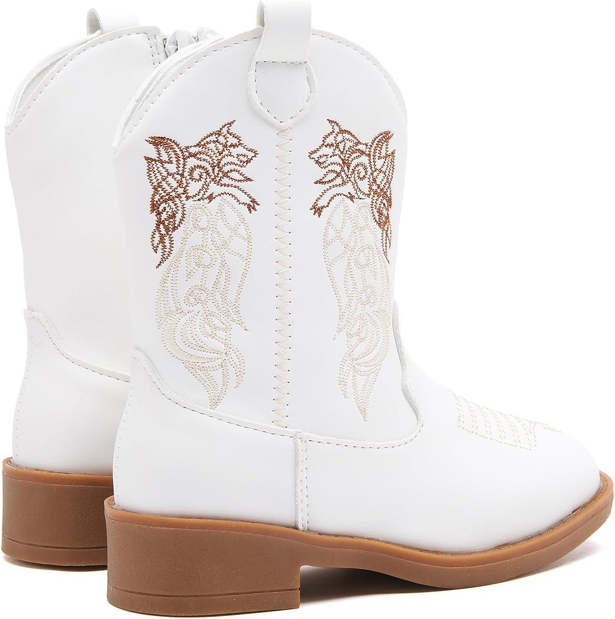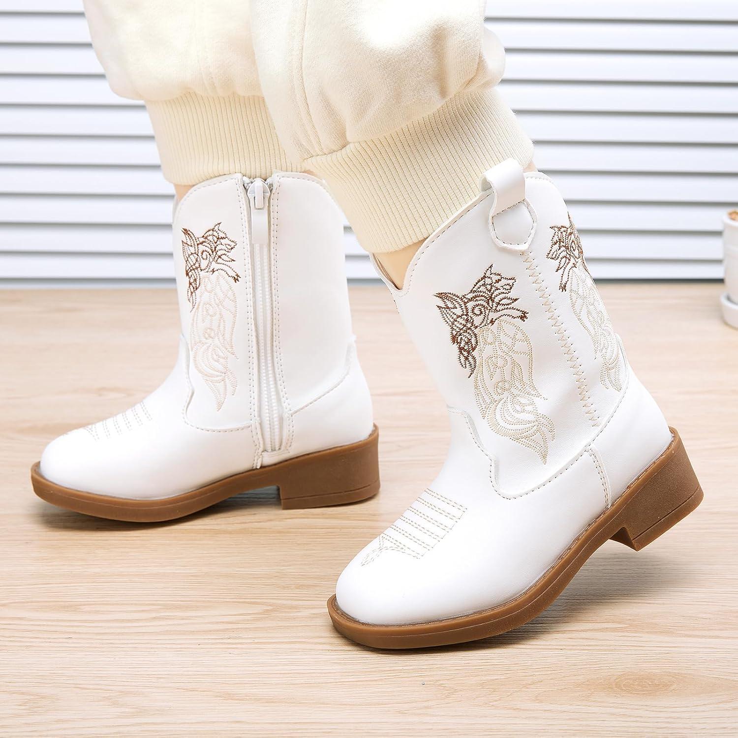 BMCiTYBM Toddler Cowgirl Cowboy Boots Boys Girls Square Toe Western Boots Mid Calf Side Zipper Riding Shoes for All Seasons(A-white)
