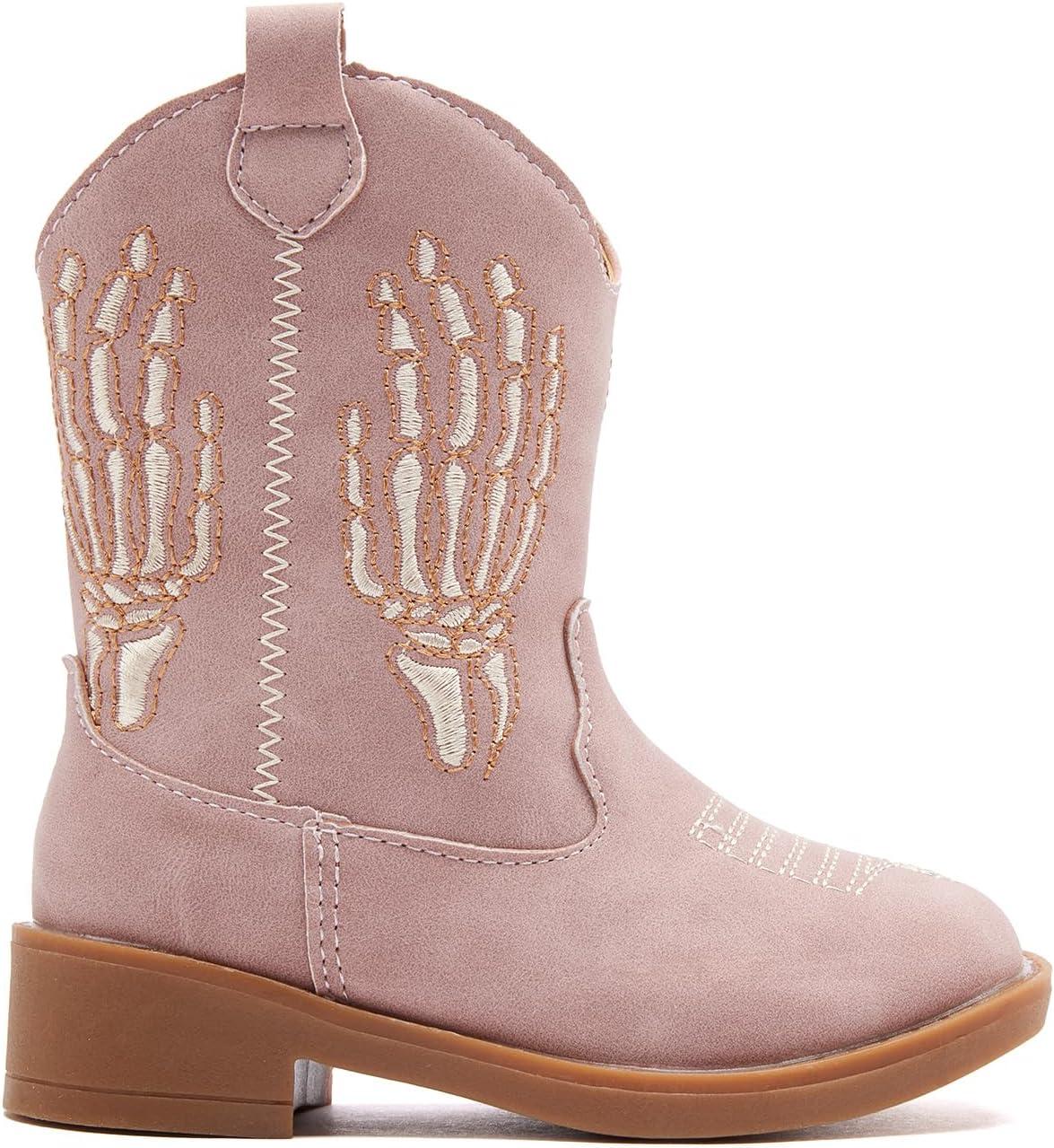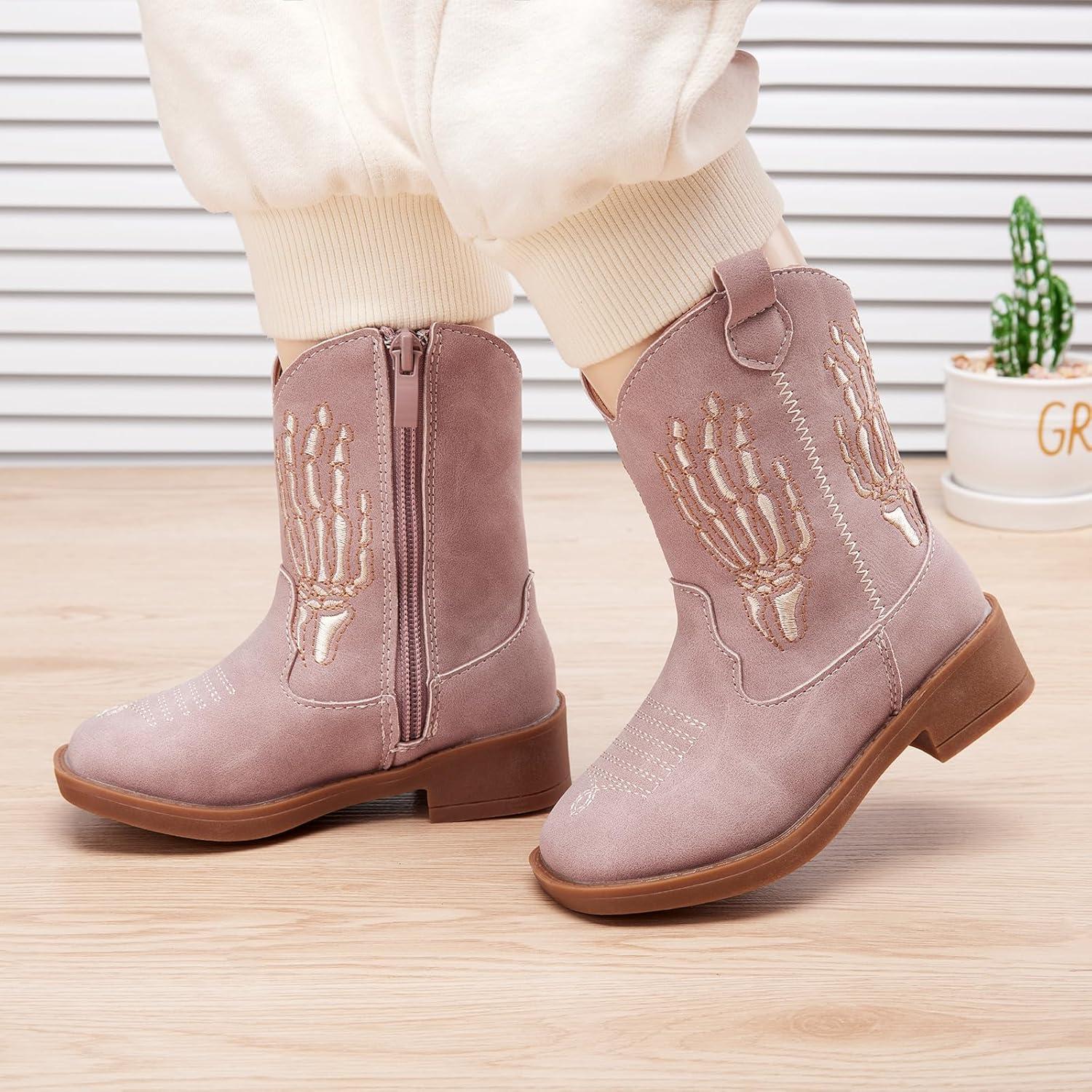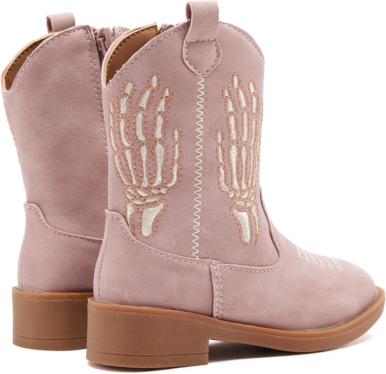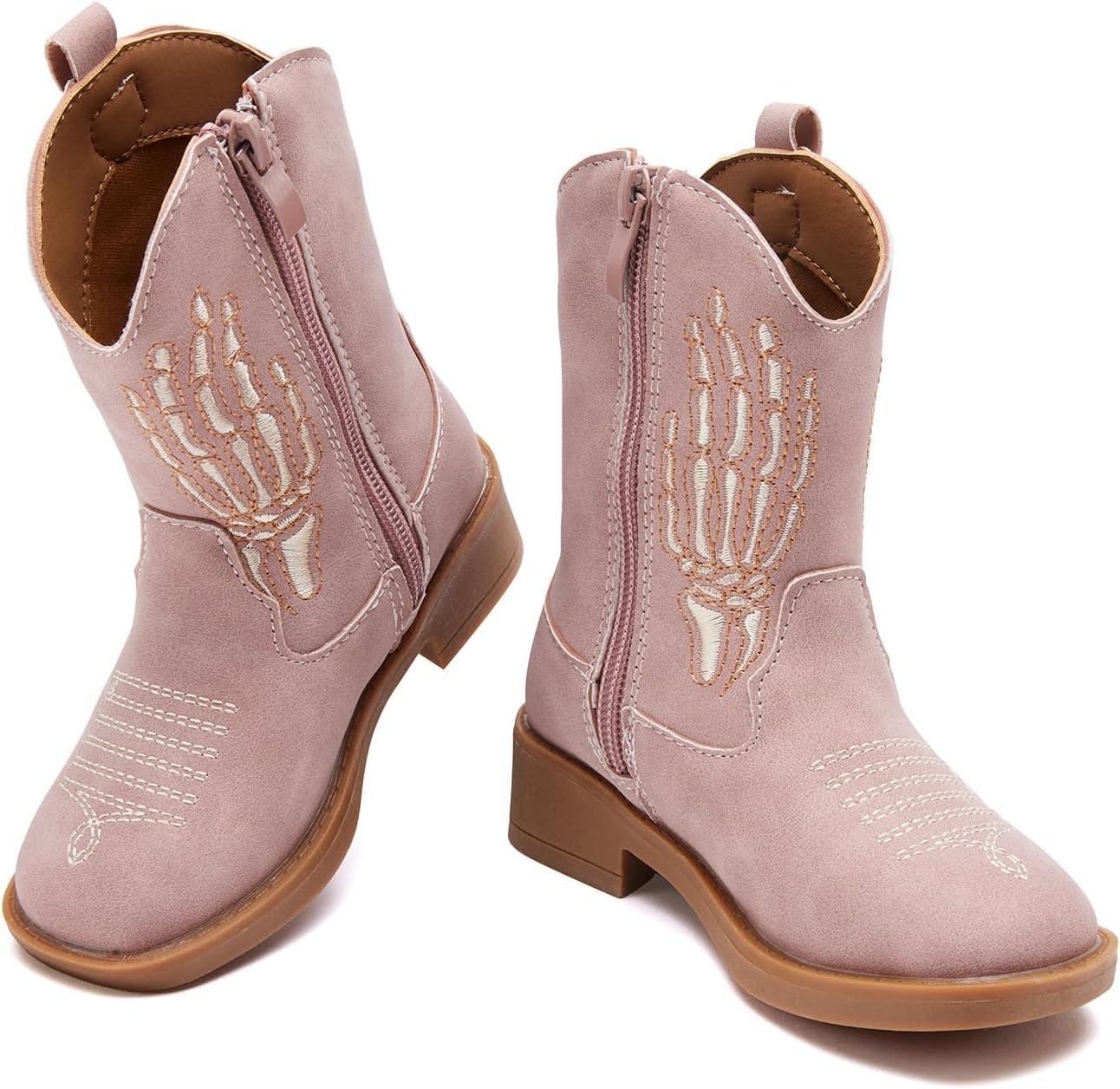 BMCiTYBM Toddler Cowgirl Cowboy Boots Boys Girls Square Toe Western Boots Mid Calf Side Zipper Riding Shoes for All Seasons(B-pink)