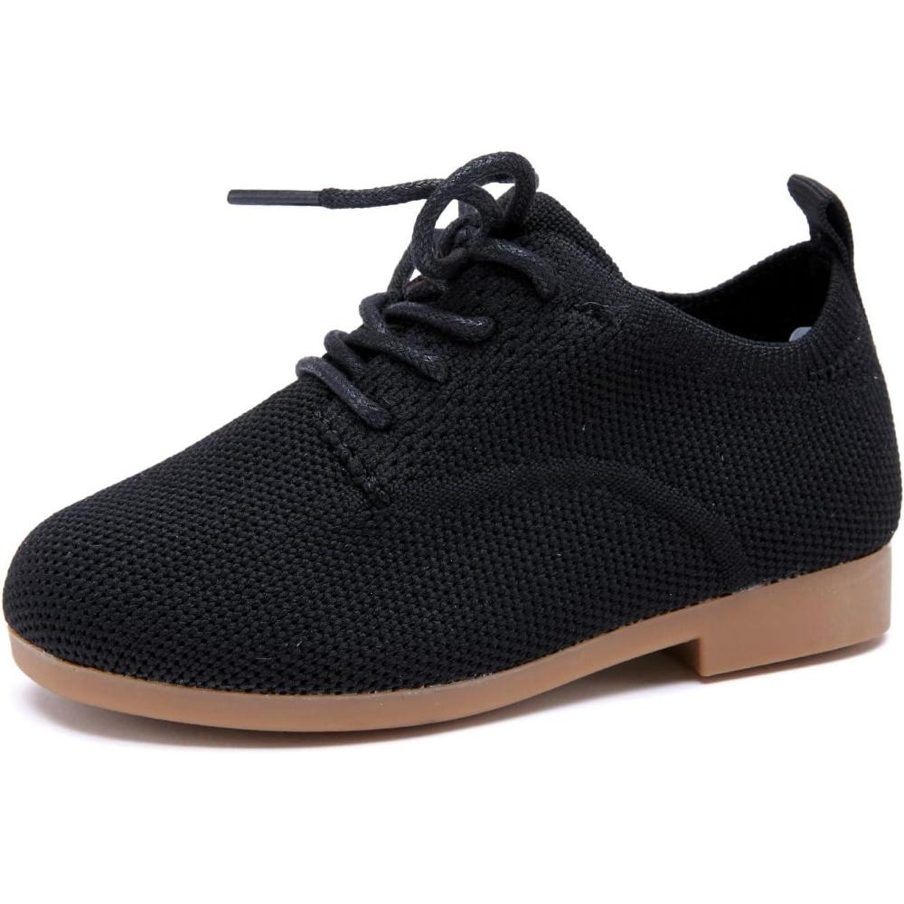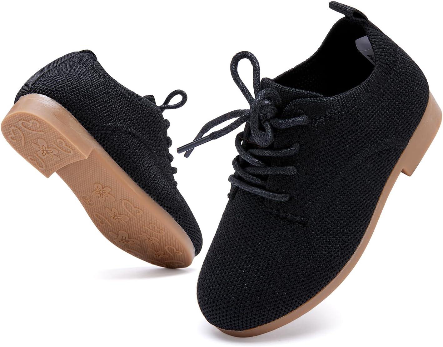 BMCiTYBM Toddler Girl Dressy Shoes Comfortable Knit Casual Oxford Shoes School Uniform Loafer Flats(A-black)