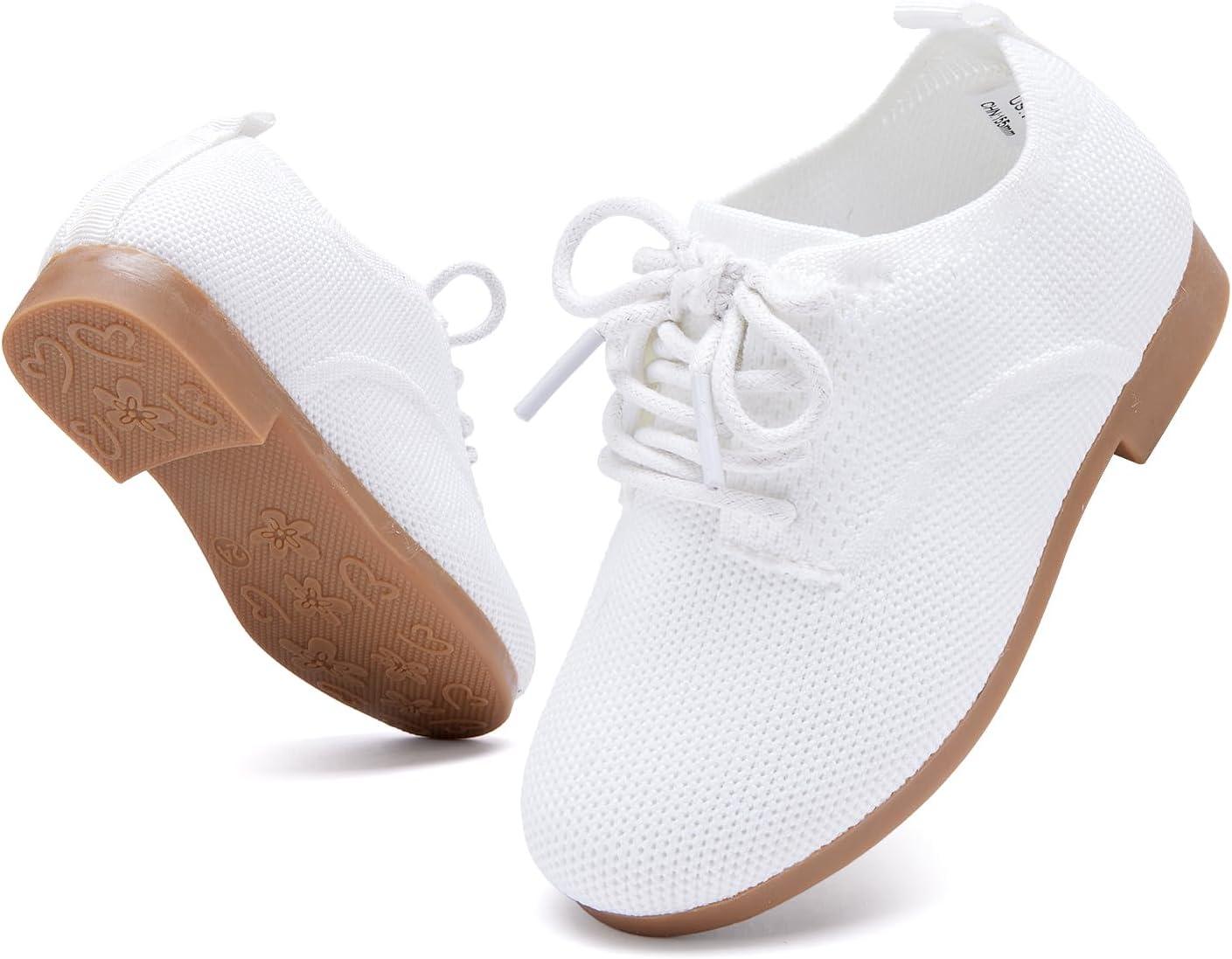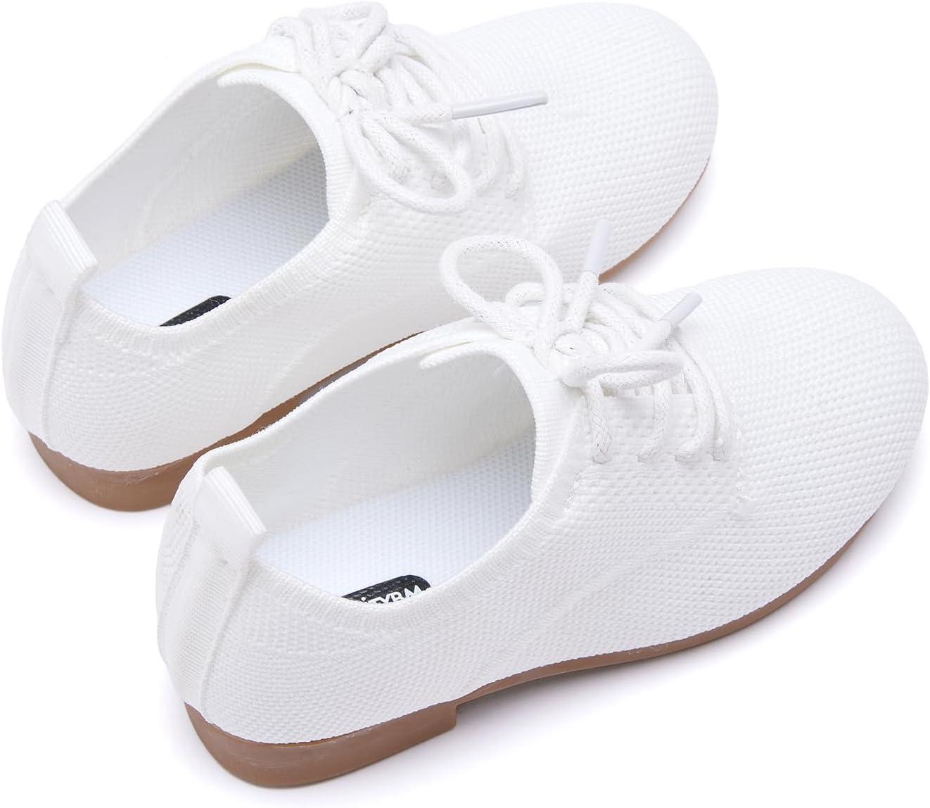 BMCiTYBM Toddler Girl Dressy Shoes Comfortable Knit Casual Oxford Shoes School Uniform Loafer Flats(A-white)