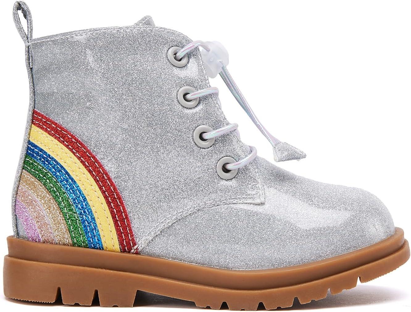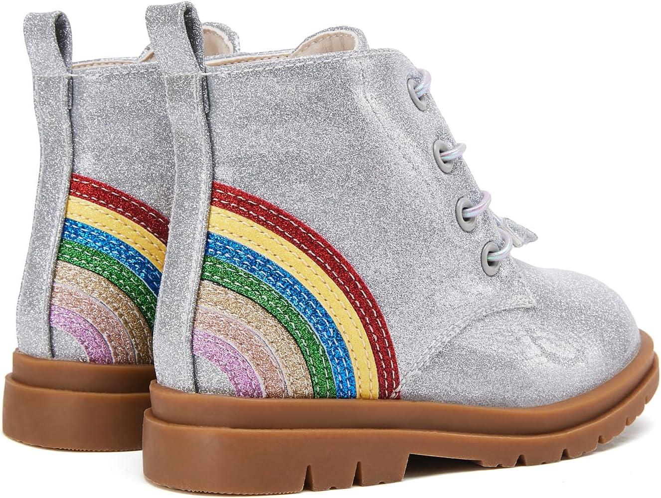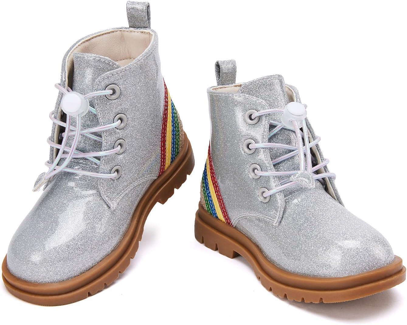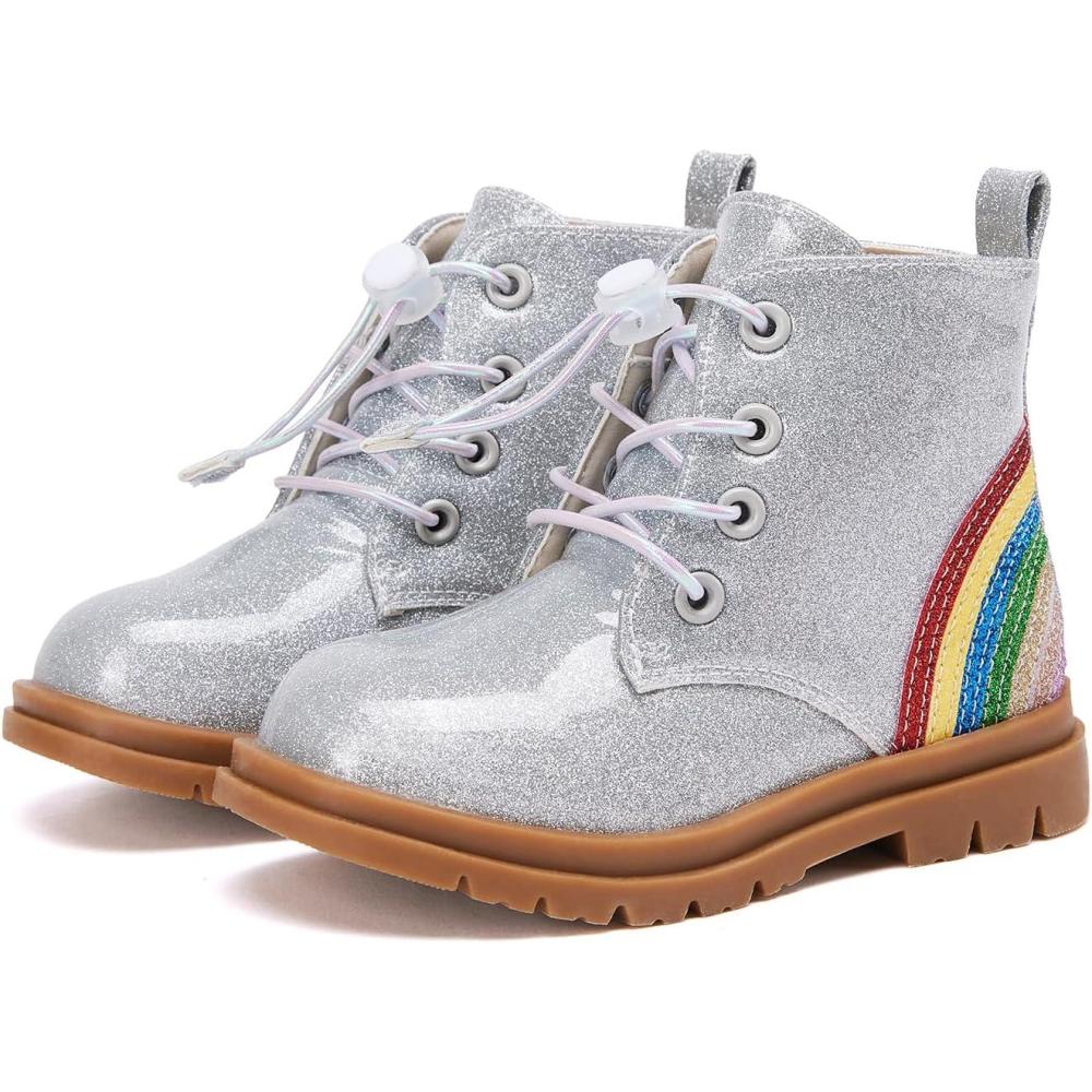 BMCiTYBM Toddler Girls Boots Round Toe Lace Up Combat Boots Riding Ankle Calf Shoes for All Seasons(Toddler/Little Kid(A-gittler Silver)