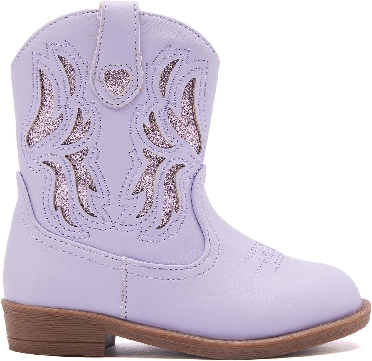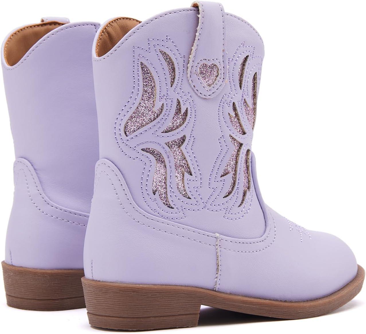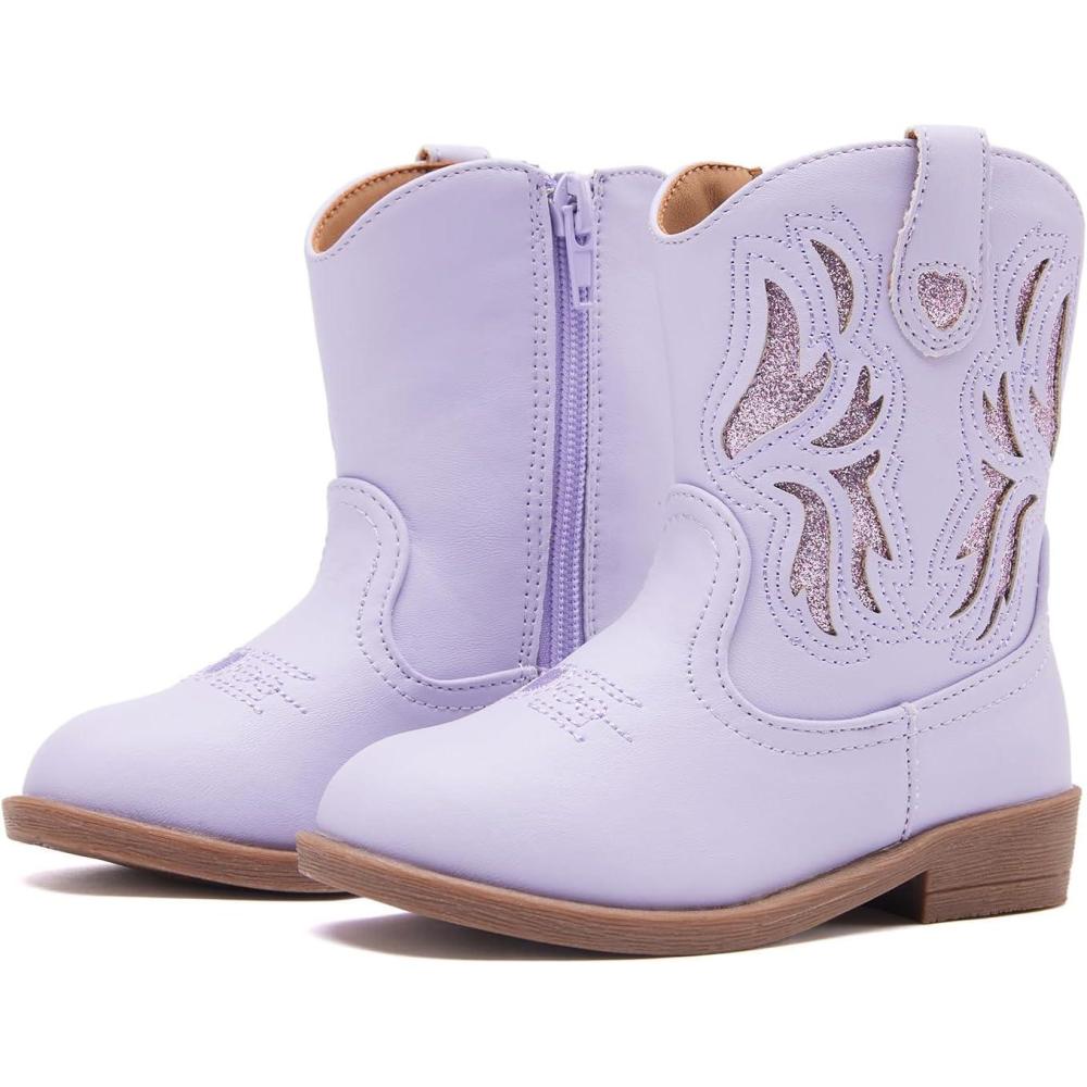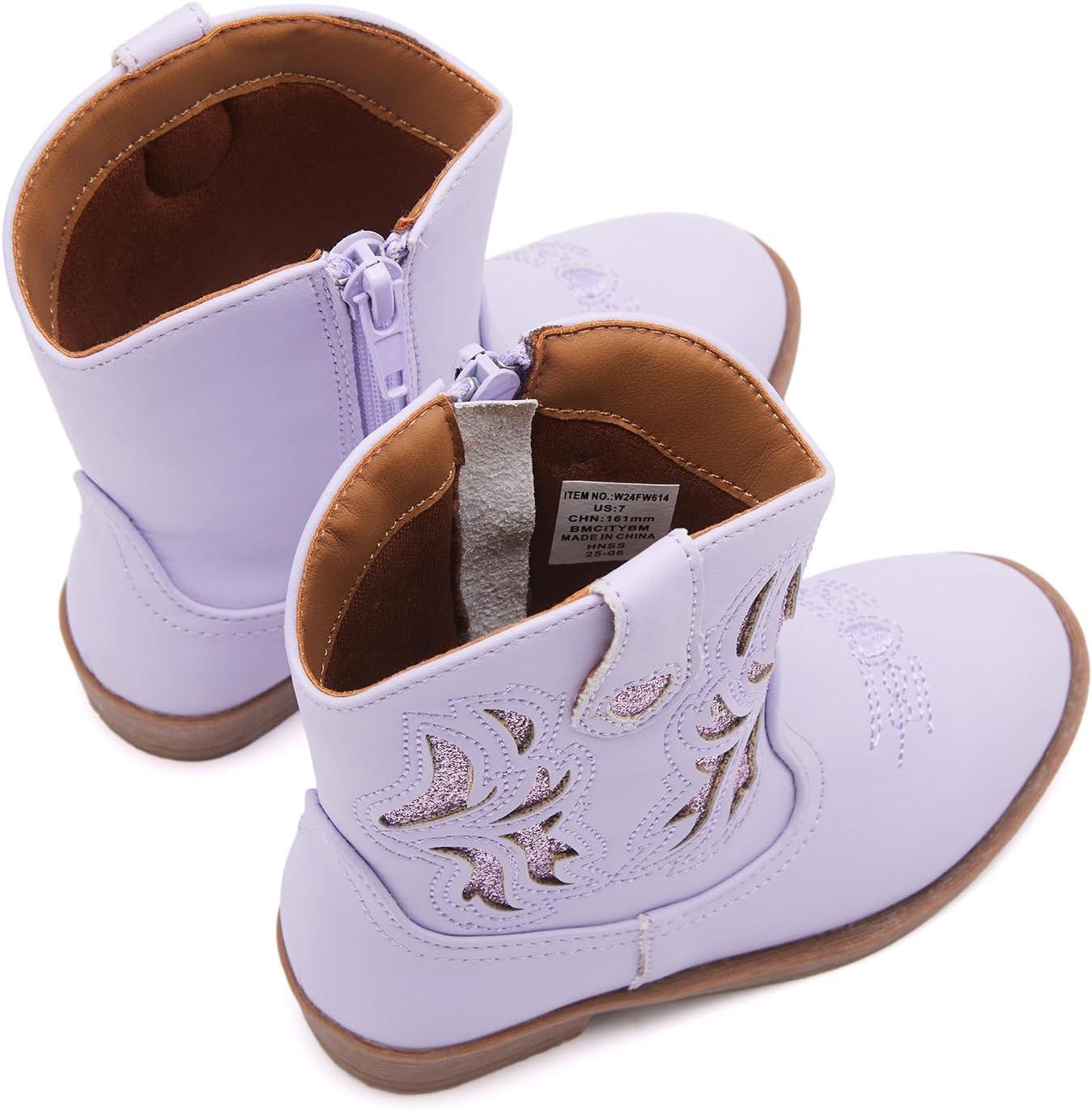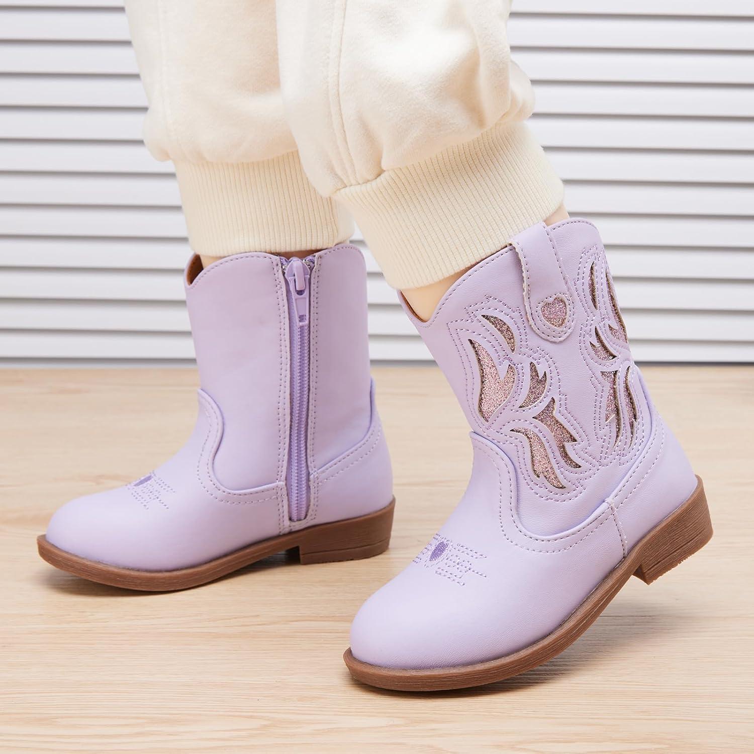 BMCiTYBM Toddler Little Girls Cowboy Cowgirl Boots Kids Pointed Toe Western Boots Mid Calf Side Zipper Riding Shoes for All Seasons (Toddler/Little Kid)(A1-purple)